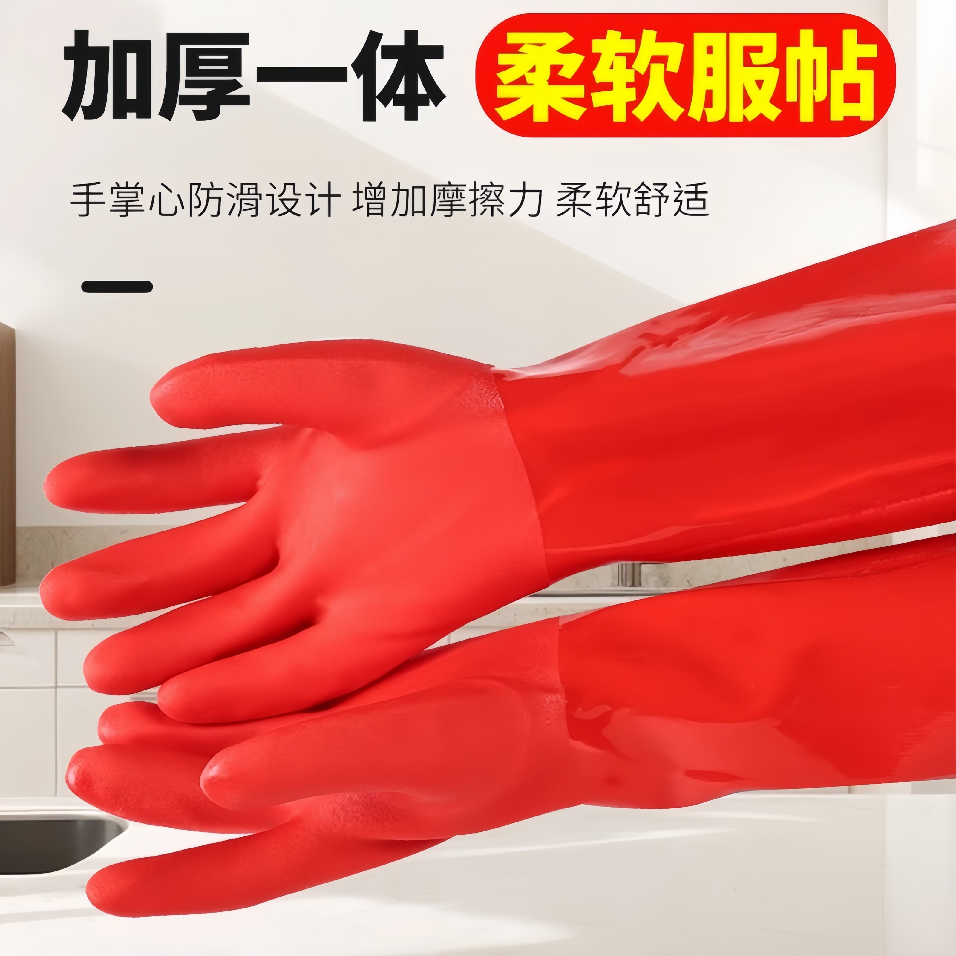 洗碗手套加绒加厚保暖加长男女家务厨房耐用胶皮洗衣清洁橡胶乳胶
