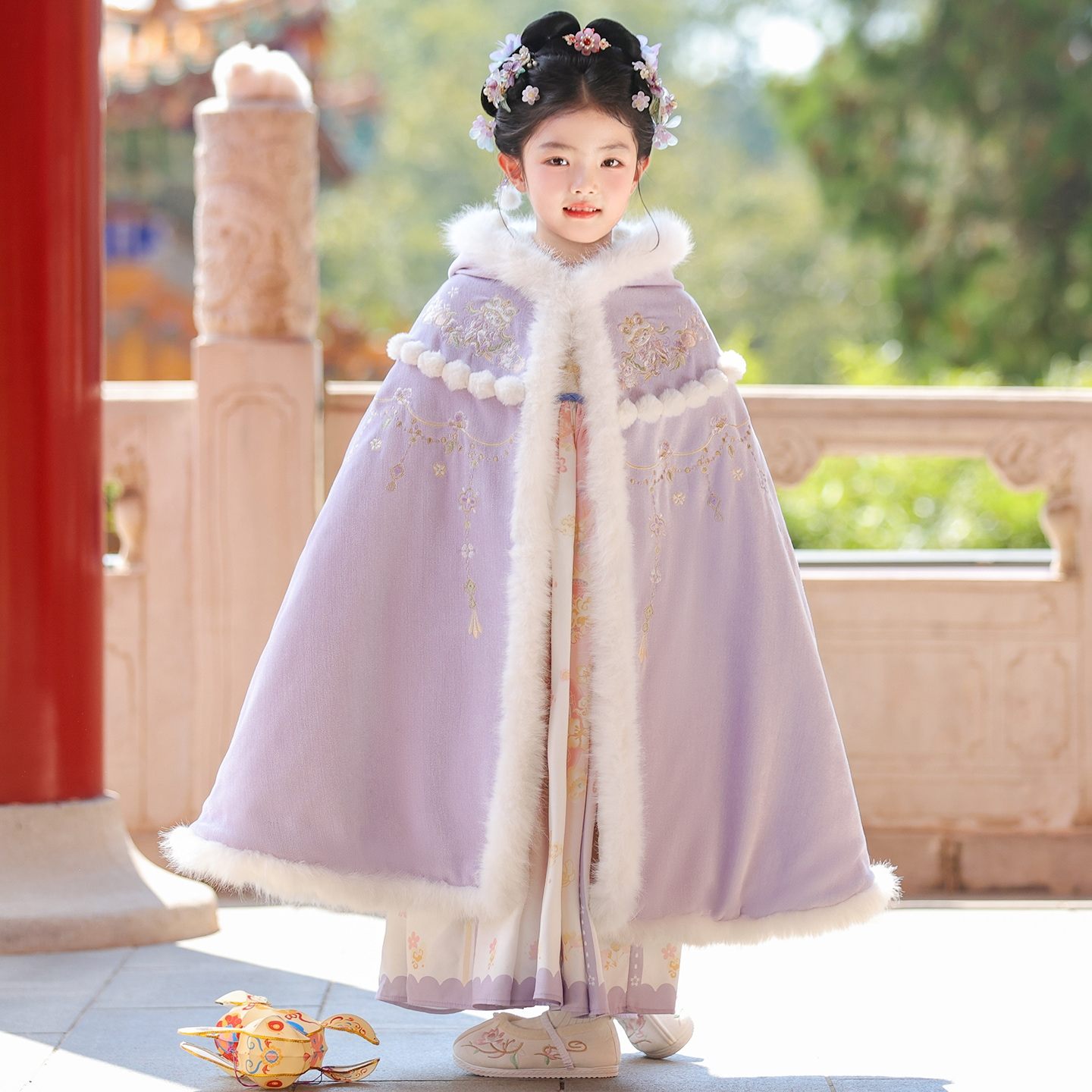 女童汉服冬季披风斗篷2026新款冬装儿童中国风加厚中长款披肩外套