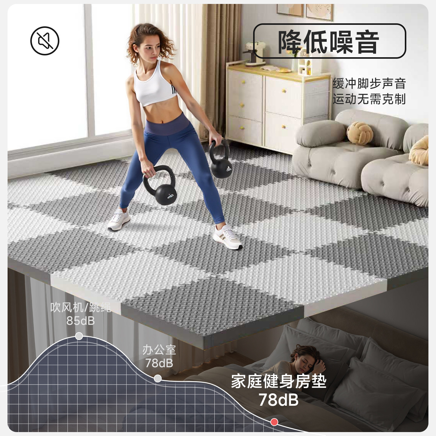 健身房地垫加厚家用楼层隔音减震运动垫子大面积全铺泡沫拼接地垫