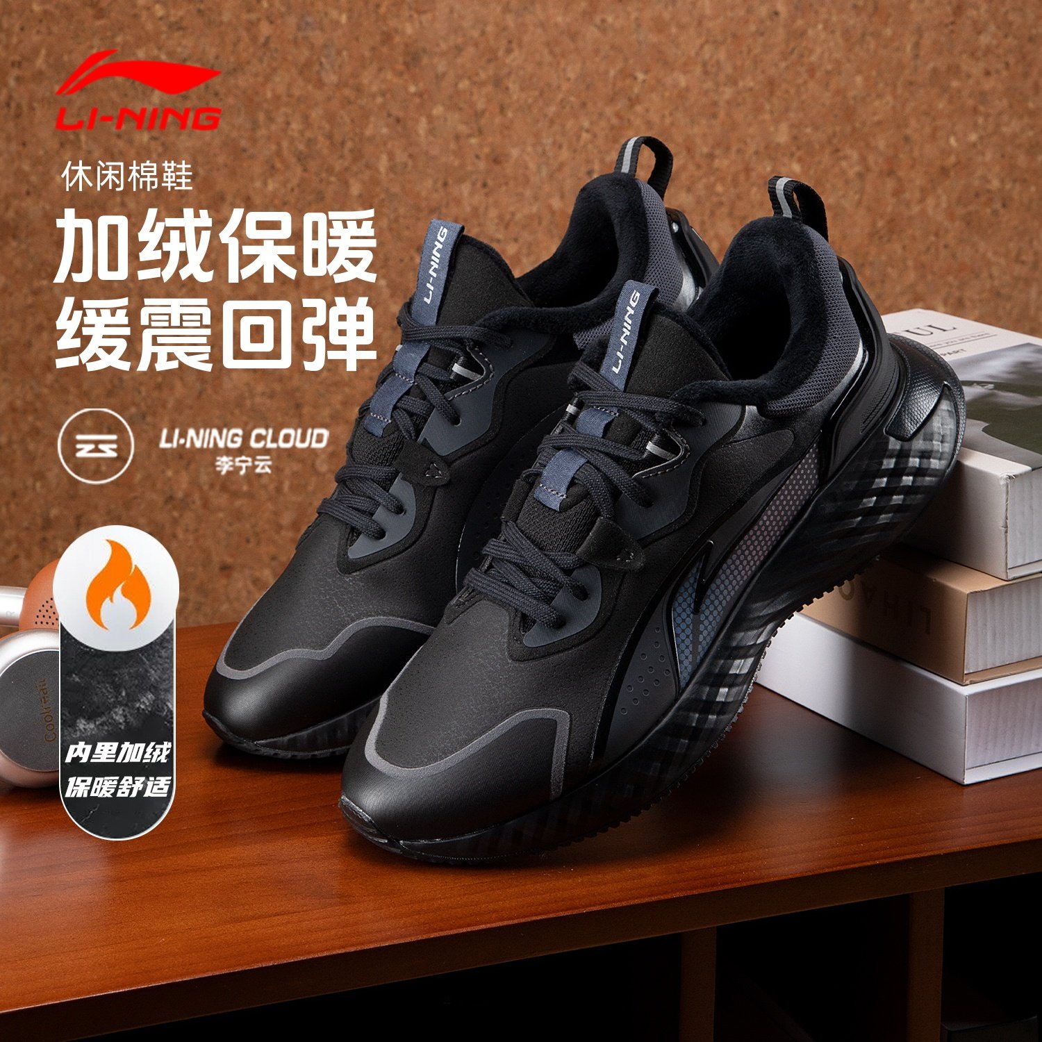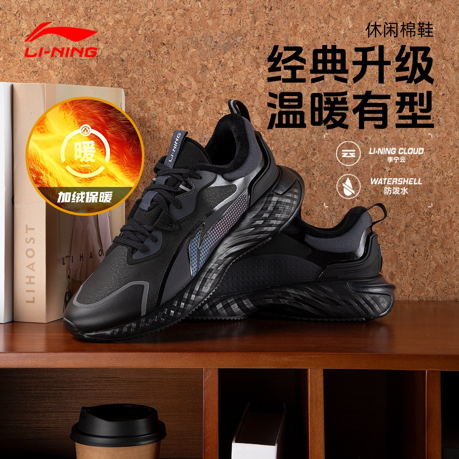 李宁棉鞋男鞋跑步鞋冬季新款加绒黑武士青少年男士休闲鞋运动鞋子
