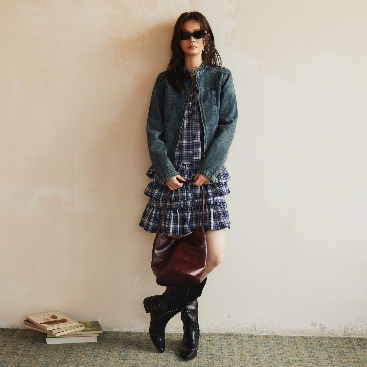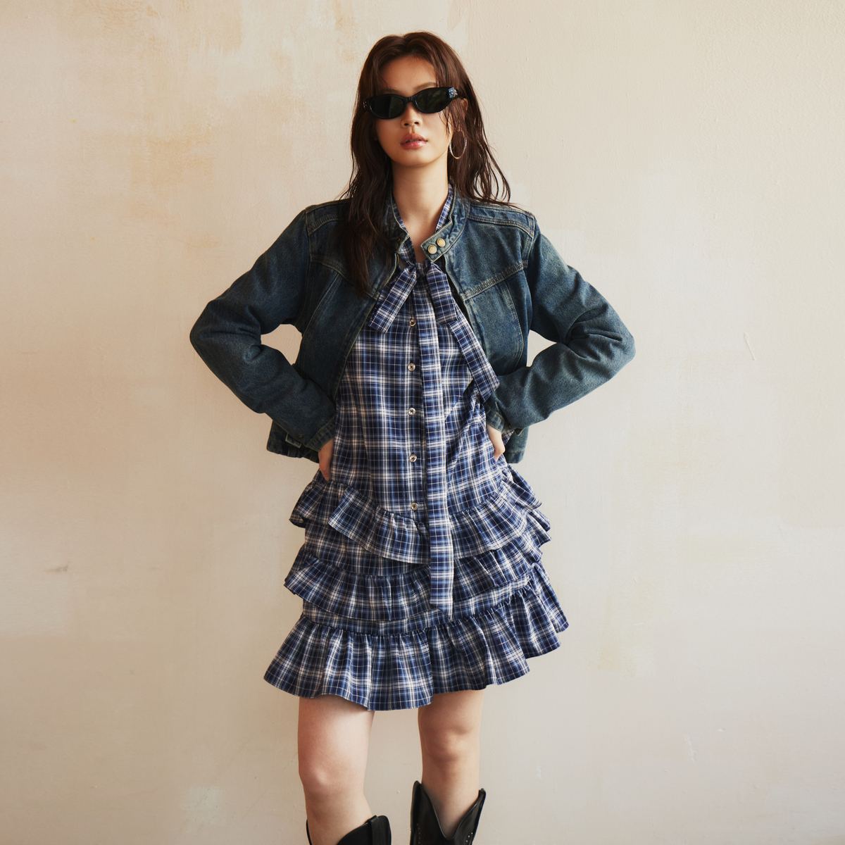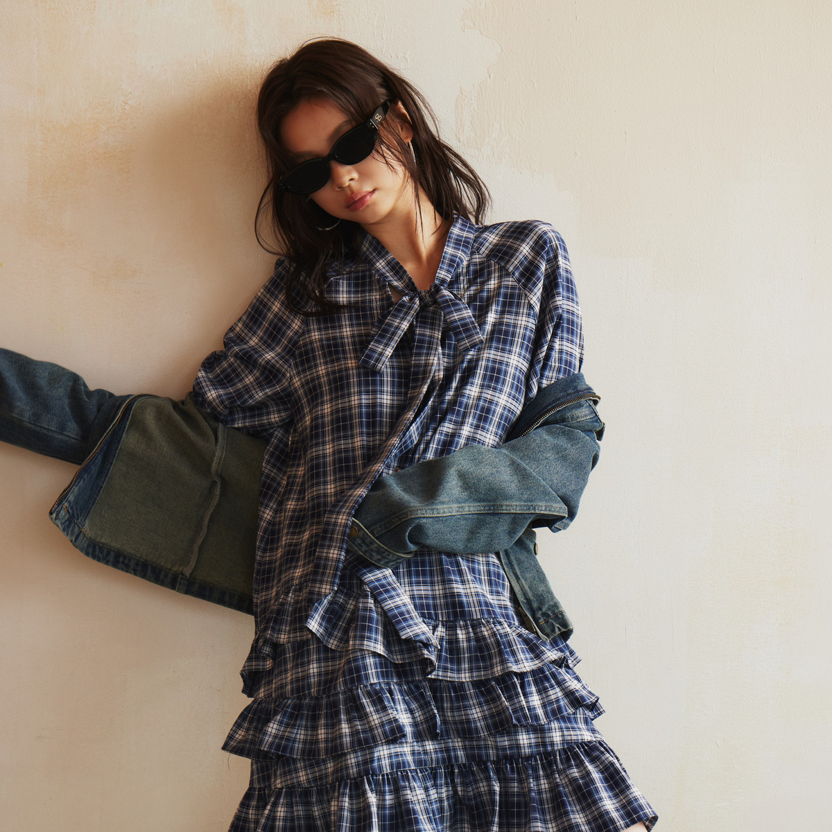 西町村屋学院风格纹OP连衣裙女2026春新款休闲舒适裙子XABA10555