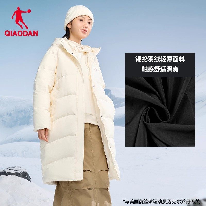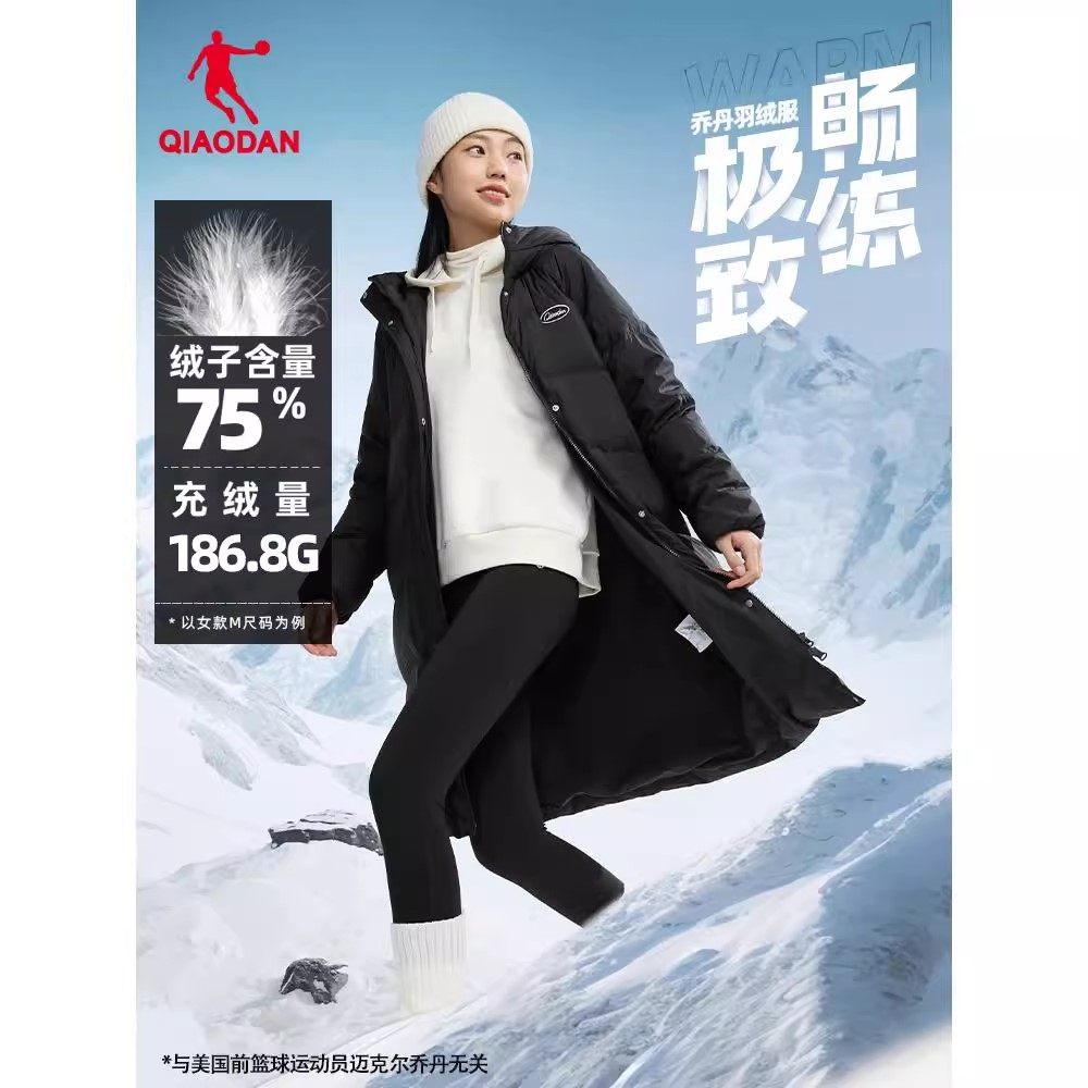 乔丹中长款羽绒服女生冬季新款保暖加厚加厚防泼水防风抗静电外套