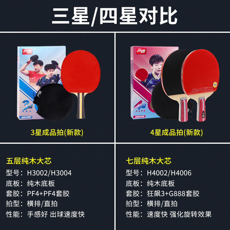 红双喜双面乒乓球拍单拍1只胶皮狂飙四星三星兵乓球拍4星横拍直拍