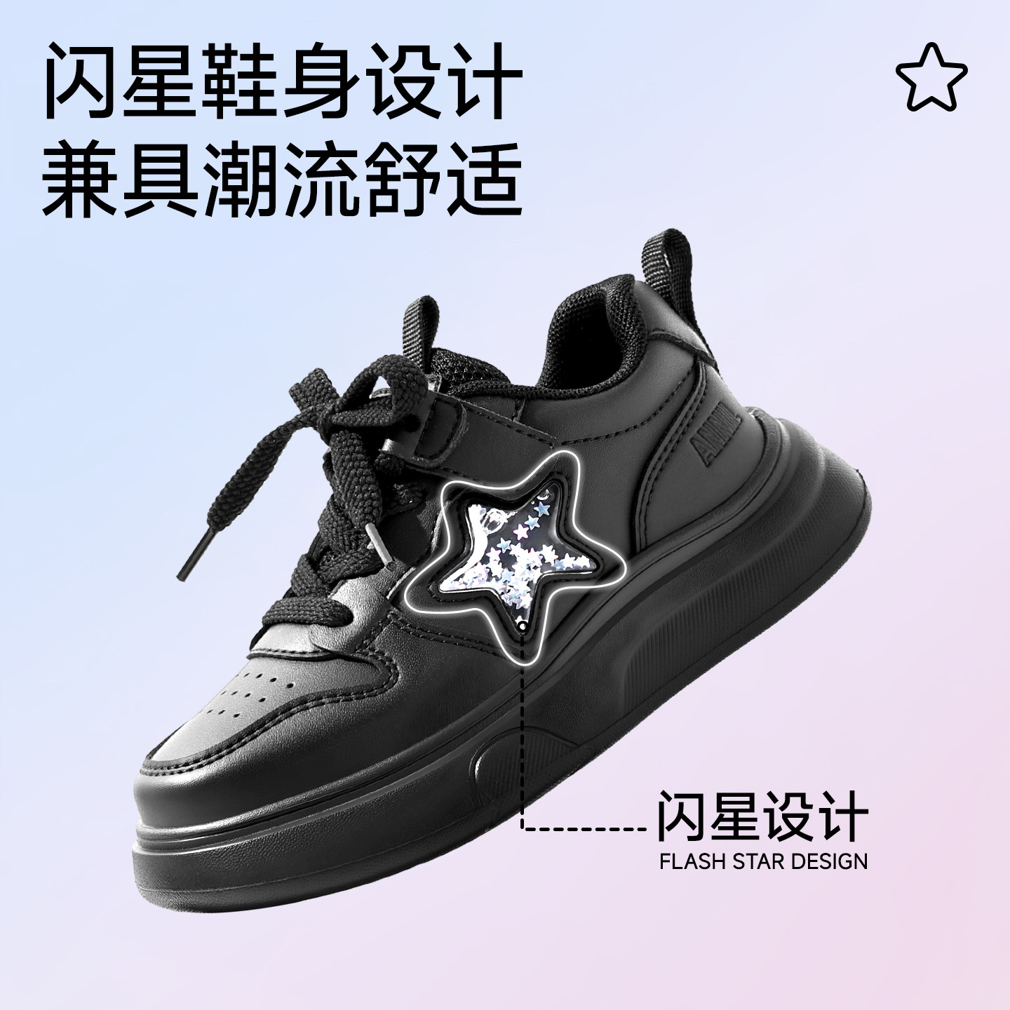 annil安奈儿女童黑色运动鞋春秋儿童2026新款跑步鞋男童老爹鞋潮