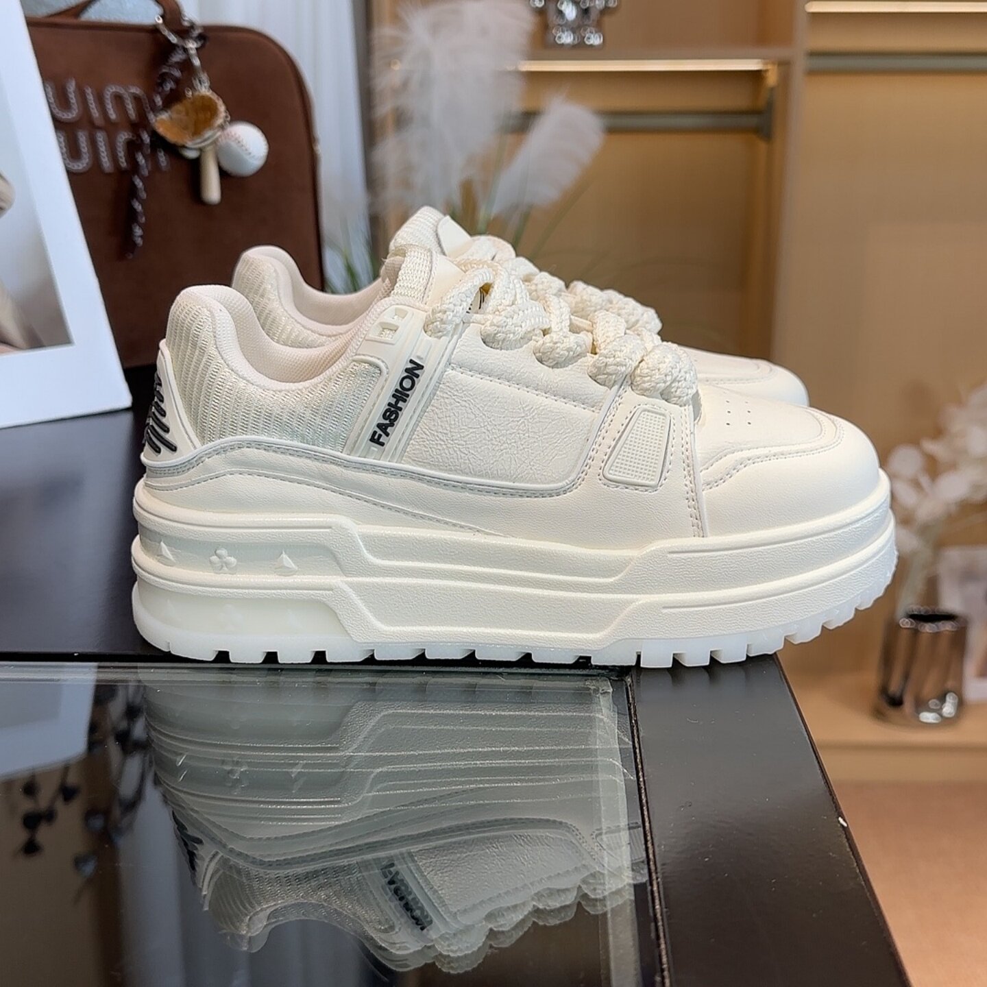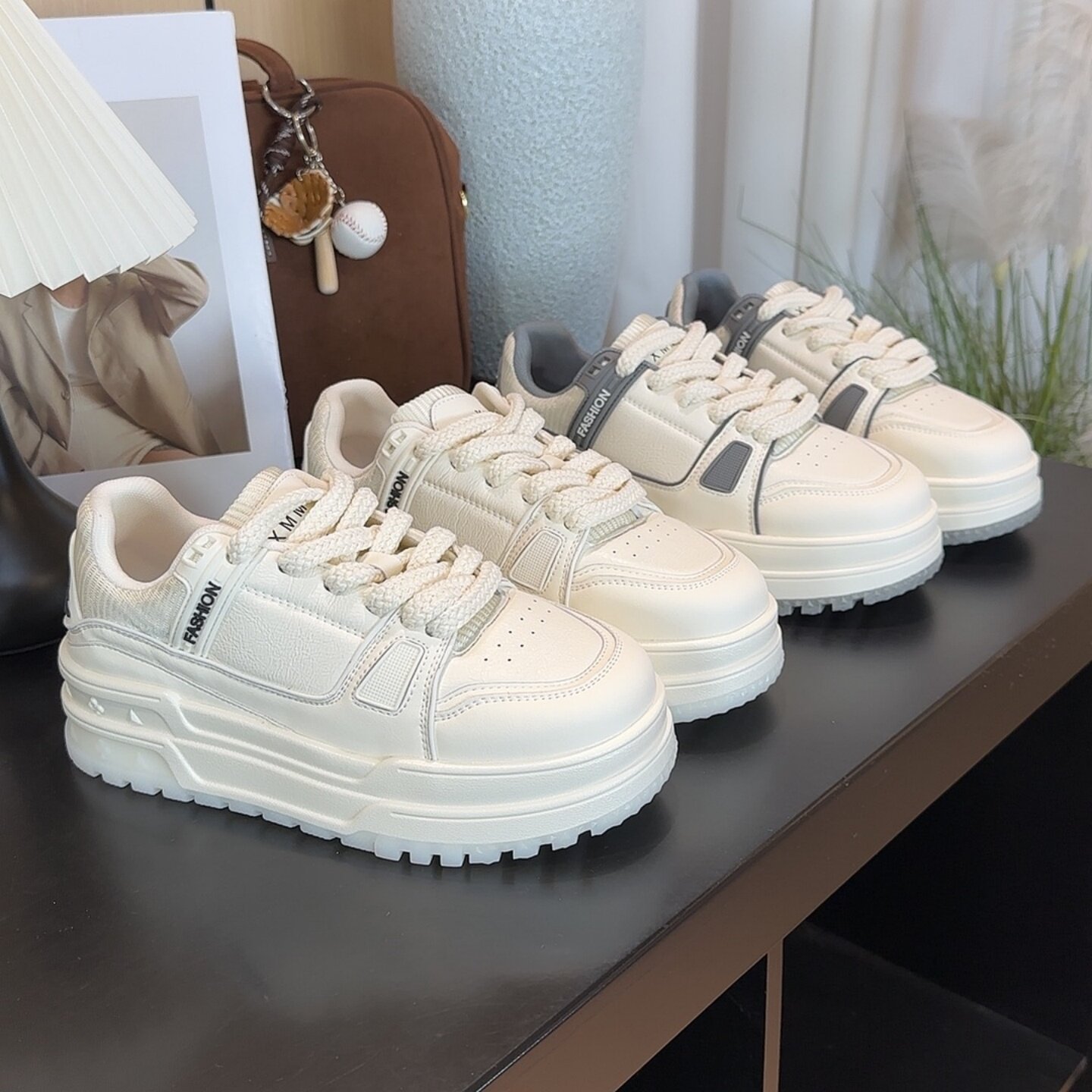 5cm厚底真皮小白鞋女款面包鞋百搭2026新款运动休闲女鞋增高板鞋