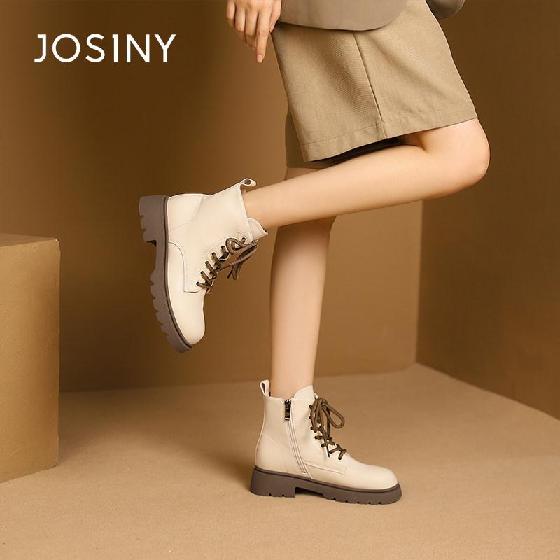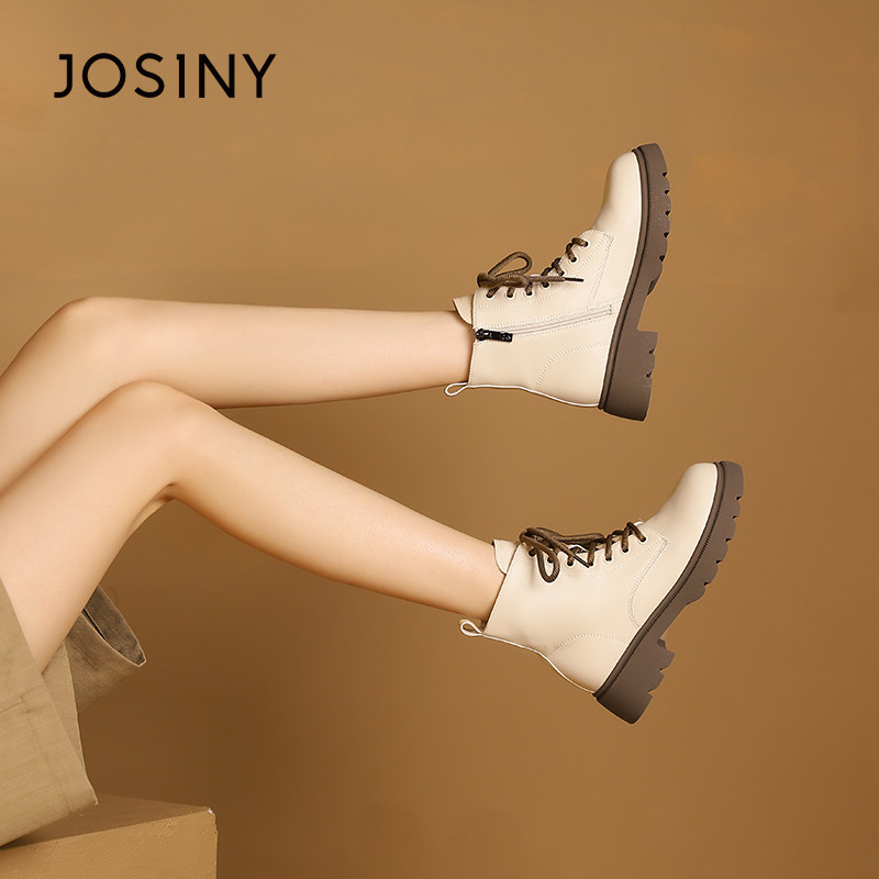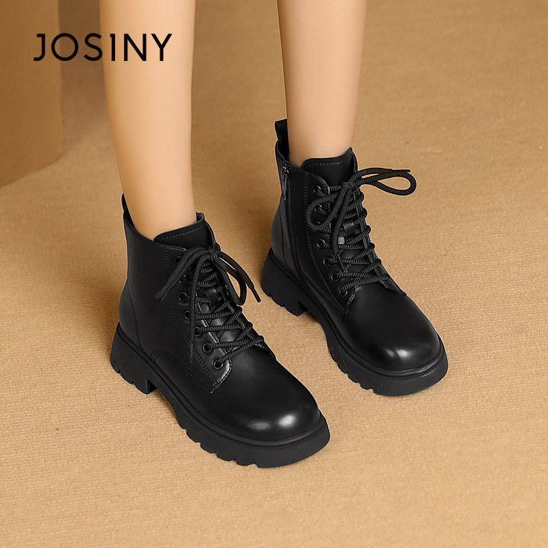 卓诗尼2025秋冬季新款厚底女鞋马丁靴短靴子英伦粗跟低跟单里加绒