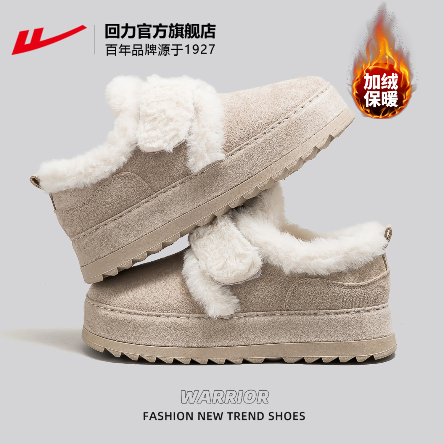 回力厚底毛绒雪地靴女款2025新款冬季女鞋可外穿加绒保暖棉鞋子女