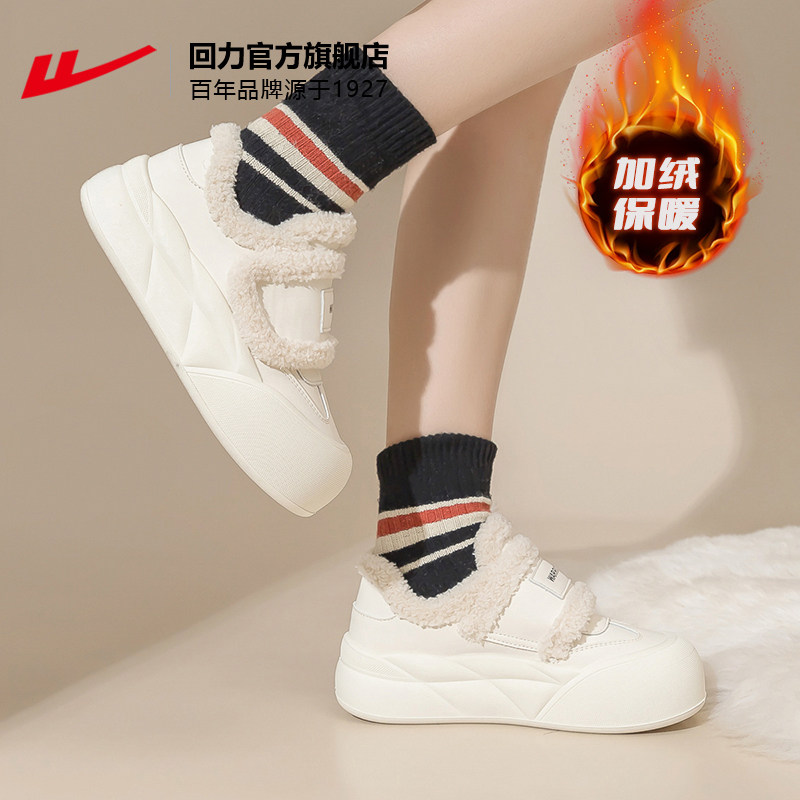 回力雪地靴女款2026新款冬季女鞋厚底勃肯鞋小白鞋加绒保暖二棉鞋