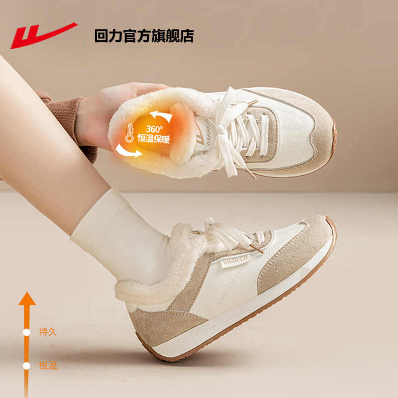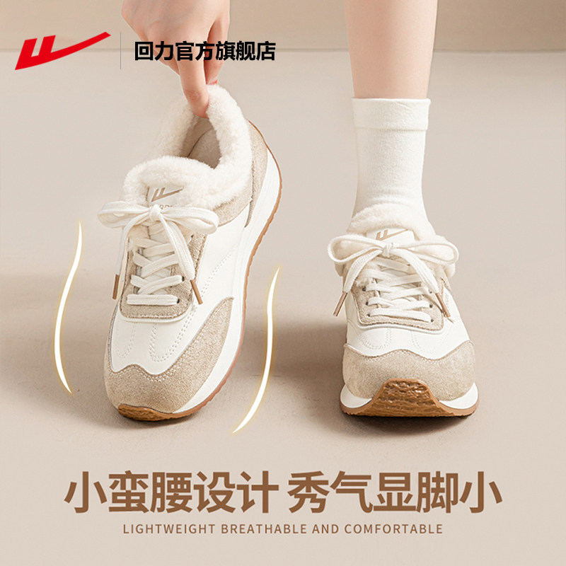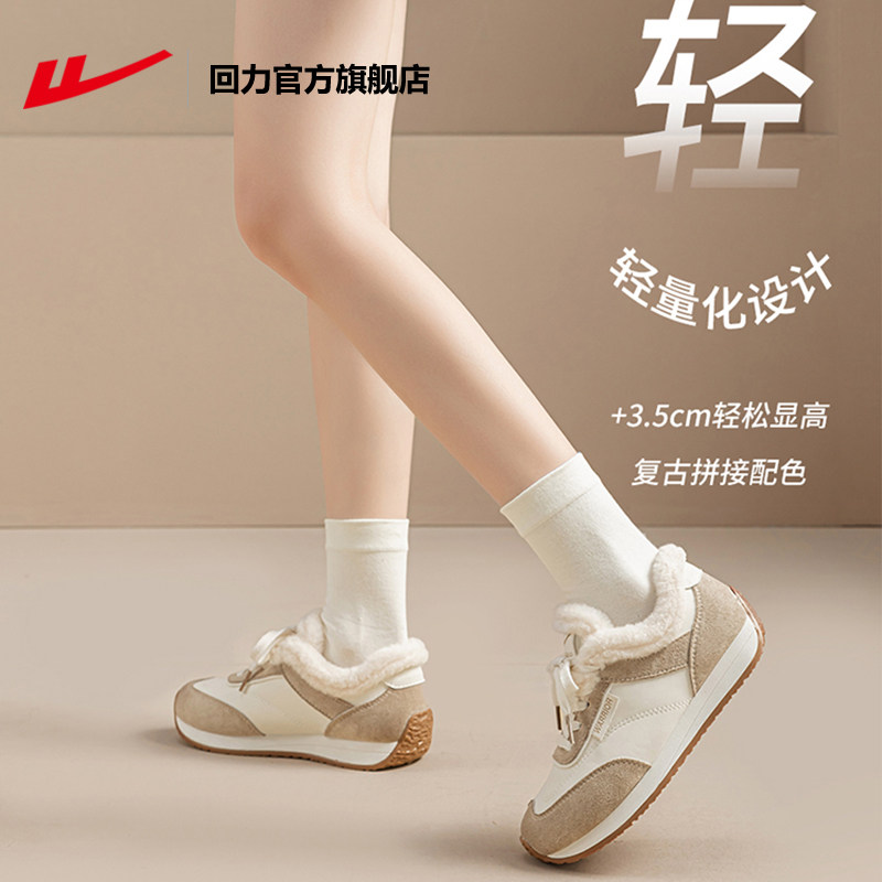 回力棉鞋女款2025新款冬季加绒加厚保暖德训鞋女厚底百搭雪地靴女