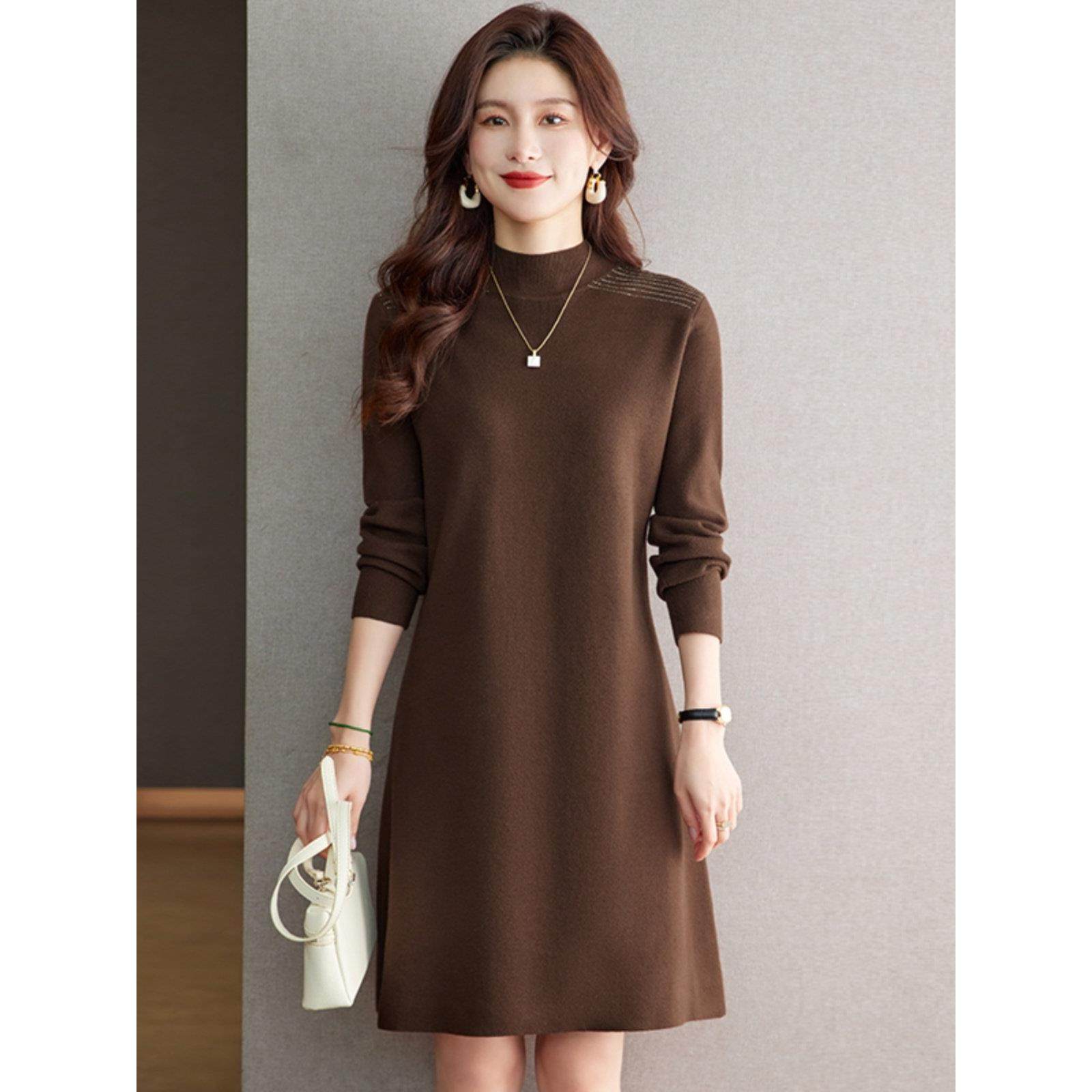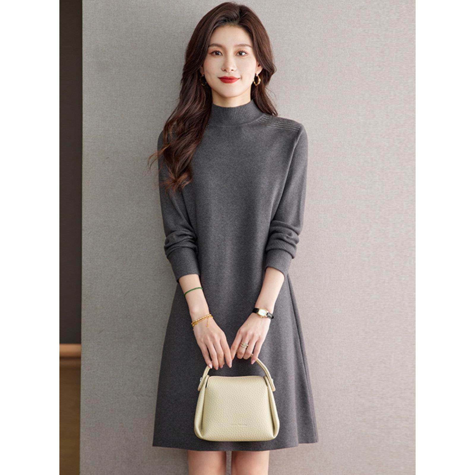 配大衣连衣裙2024新款女秋冬季小个子羊毛针织毛衣裙高端打底裙子