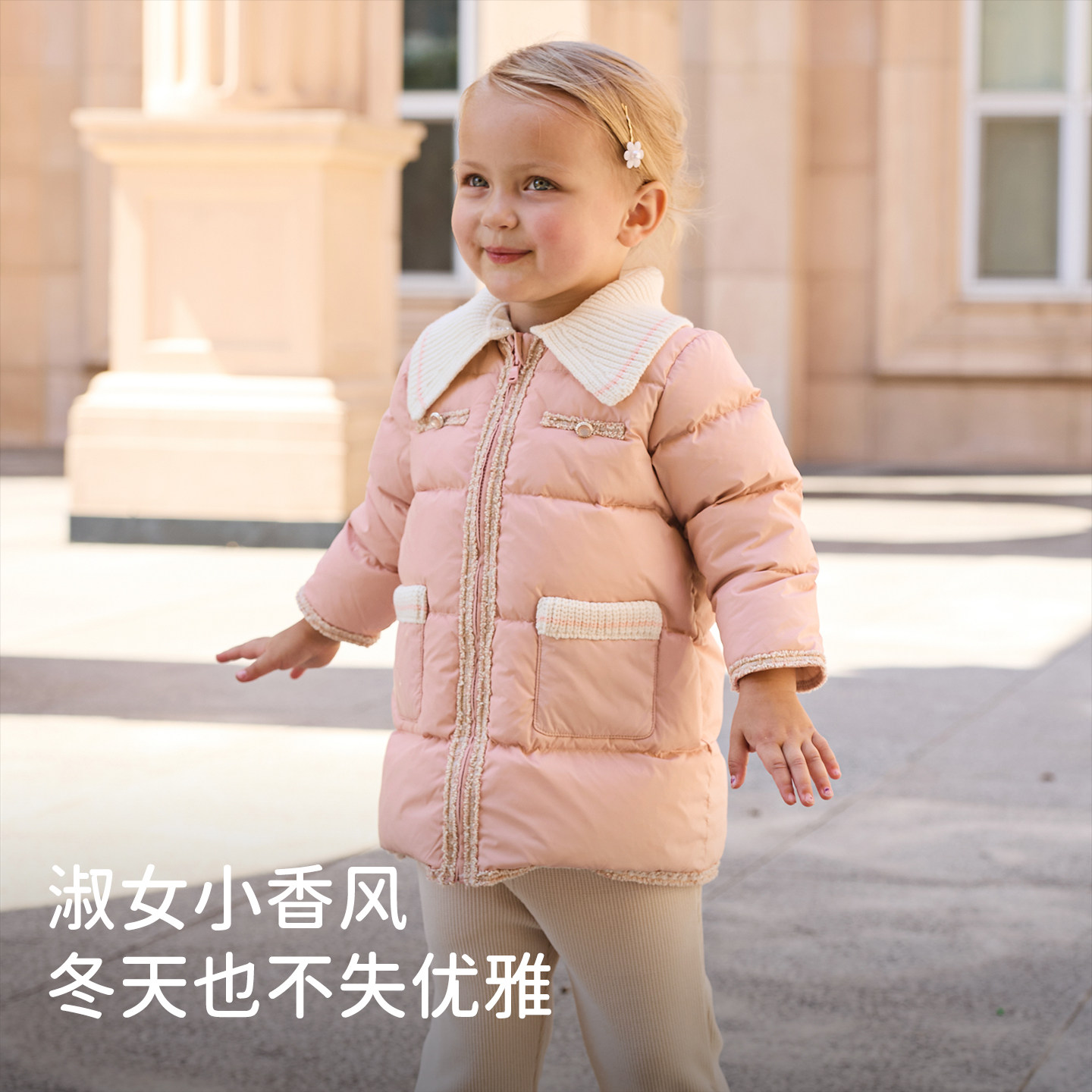 戴维贝拉女童中长款三防羽绒服儿童小香风外套2026冬新款宝宝A类