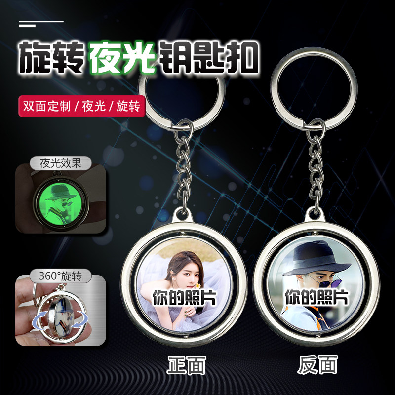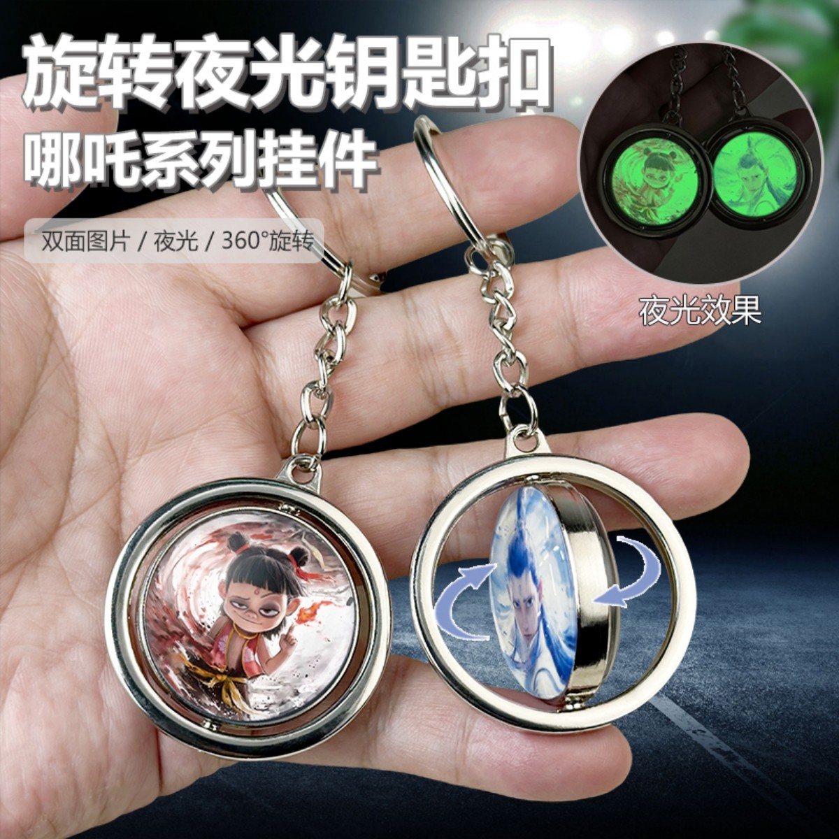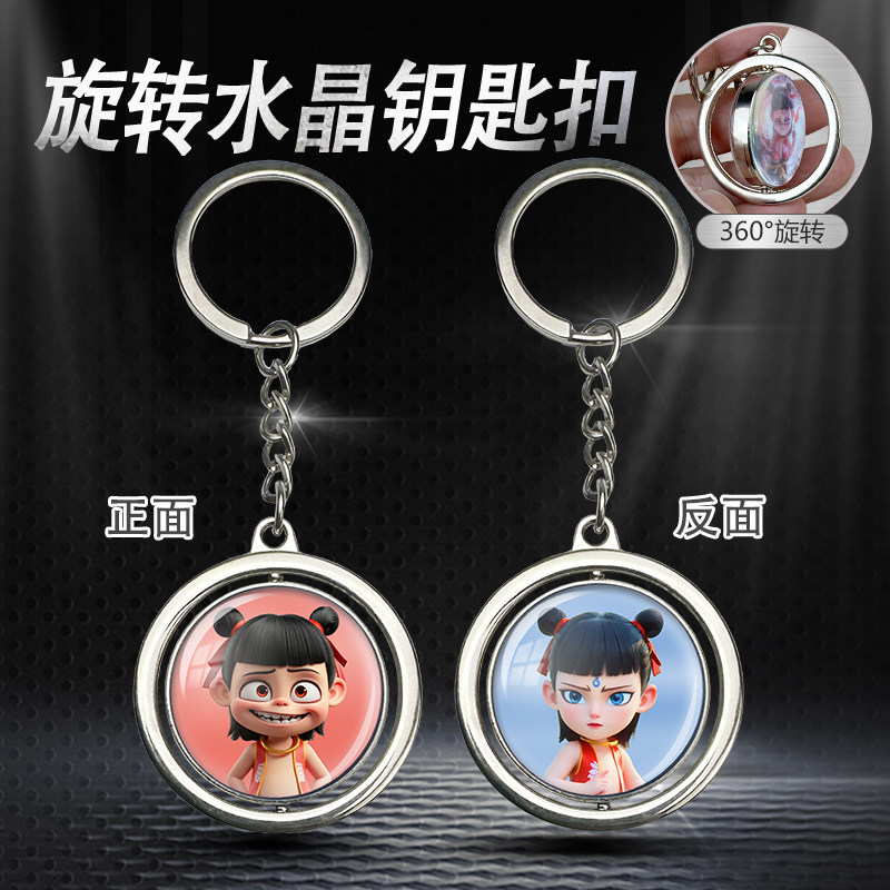 哪吒周边挂件旋转夜光钥匙扣敖丙动漫水晶挂饰双面照片定制小玩意