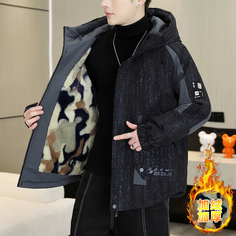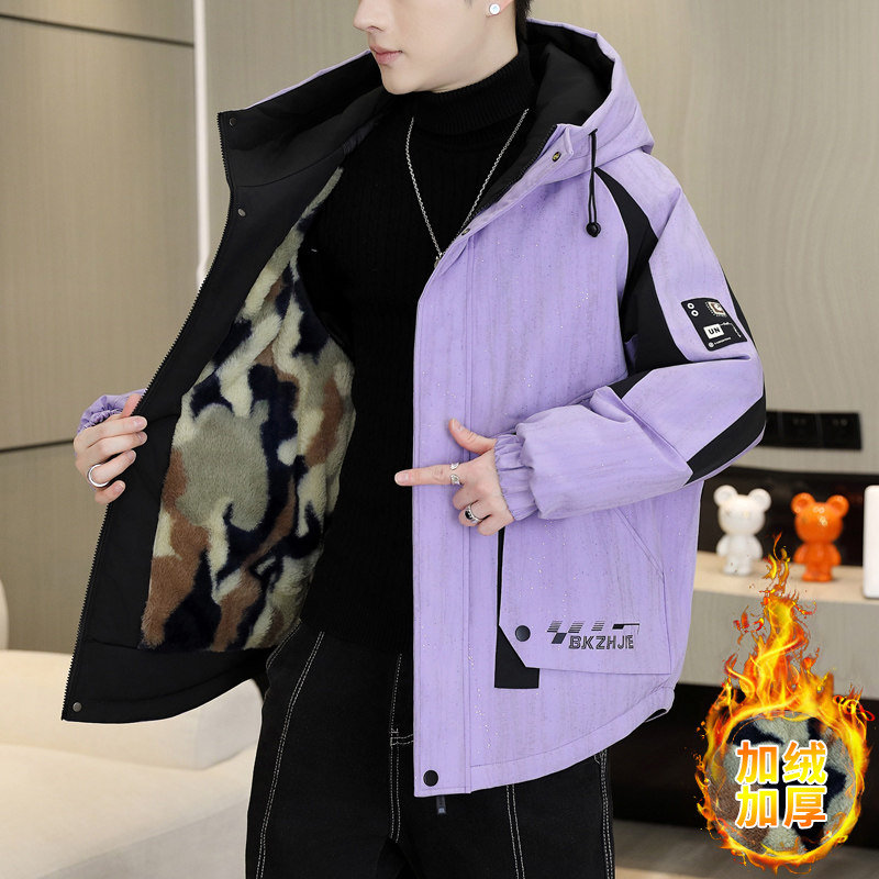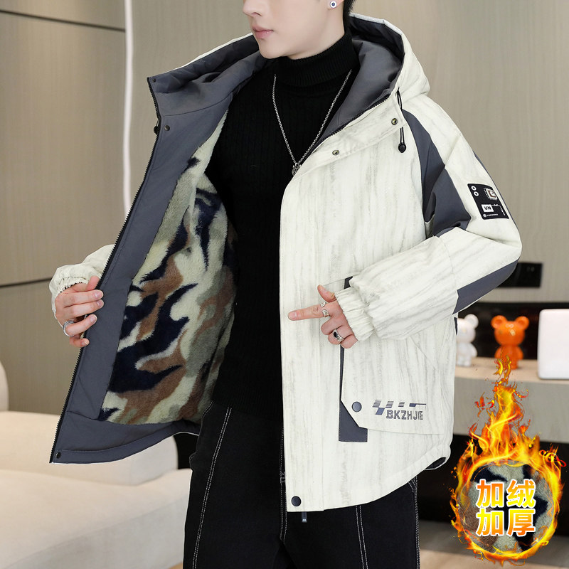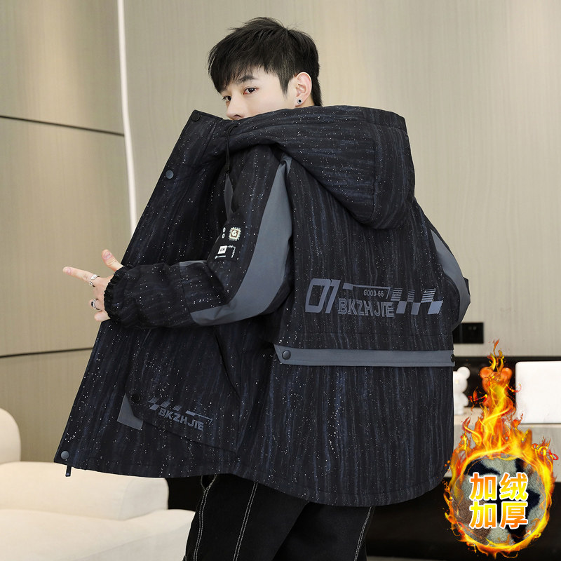 青少年加绒加厚派克服外套男孩冬季新款初高中学生大童帅气羽绒服