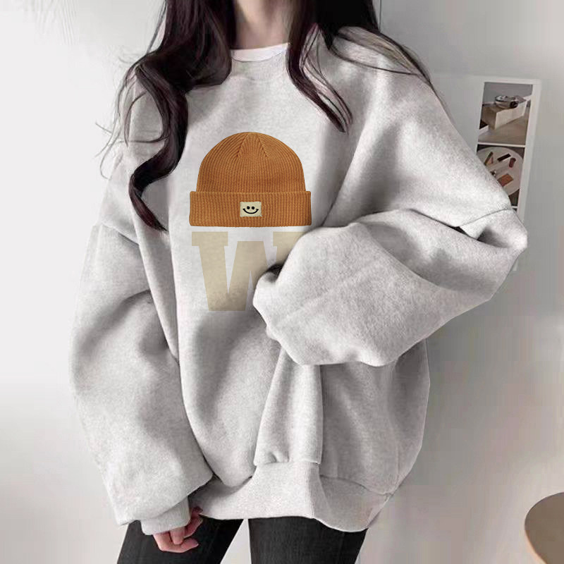 灰色加绒卫衣女款2026新款圆领无帽初中生胖mm大码女装秋冬上衣女