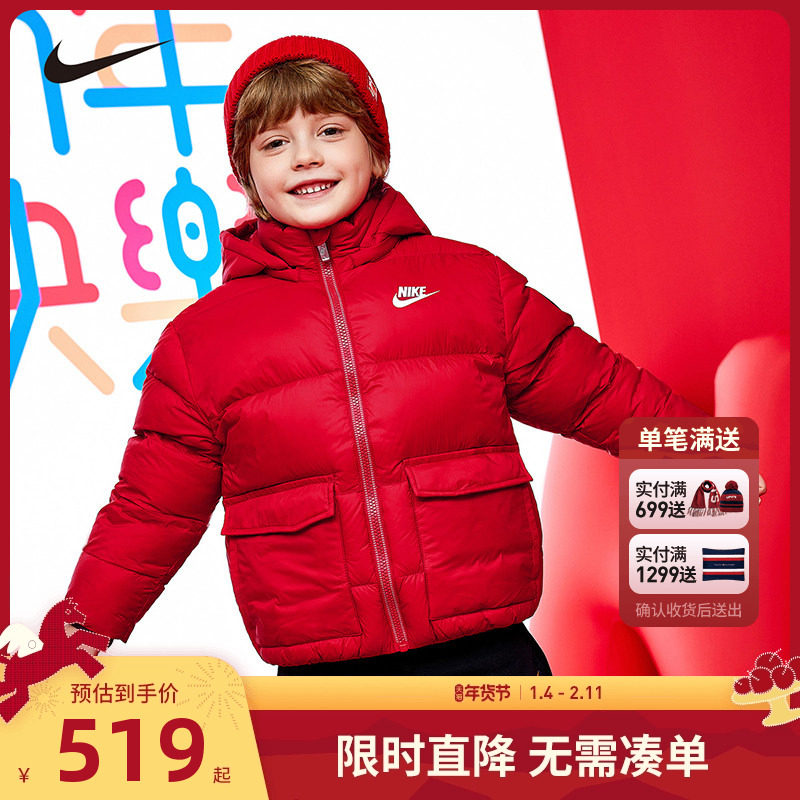 【新年红色】NIKE儿童装冬季男童羽绒服中大童加厚外套NY2342005