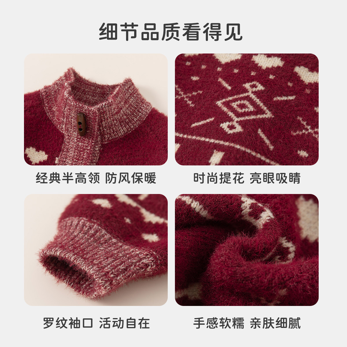 红色毛衣男童新年衣服冬季新款女童过年外套儿童加厚上衣宝宝冬装