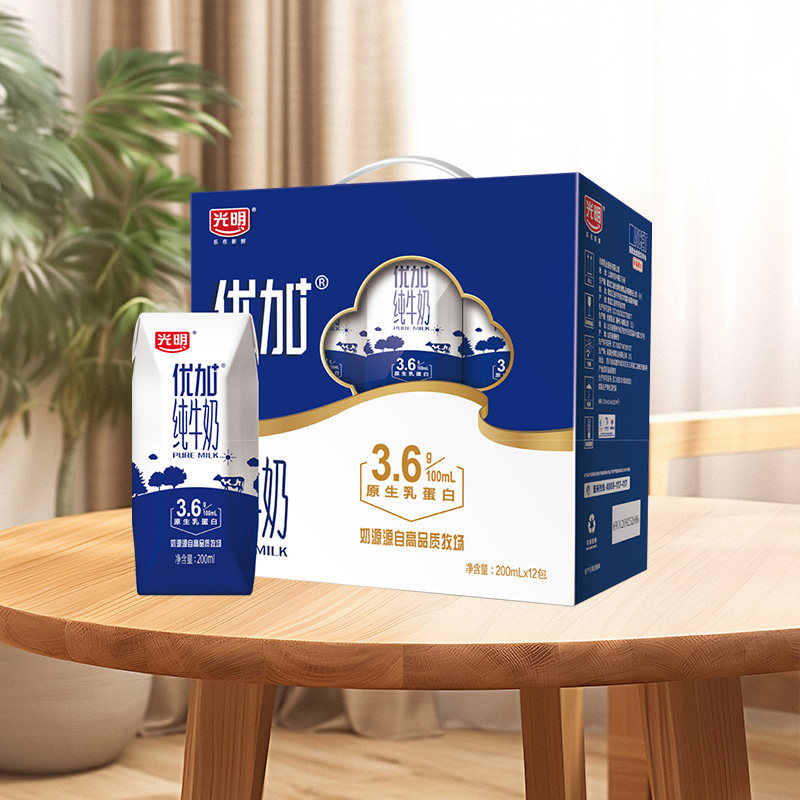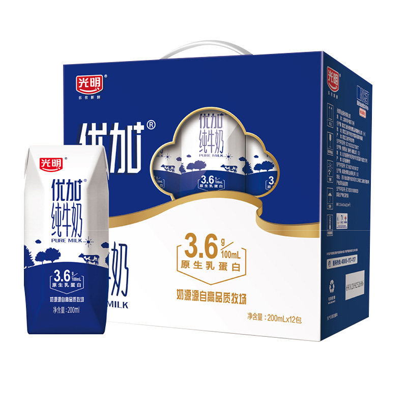 【2月】 光明优加纯牛奶200ml*12盒整箱早餐奶 节日送礼礼盒装