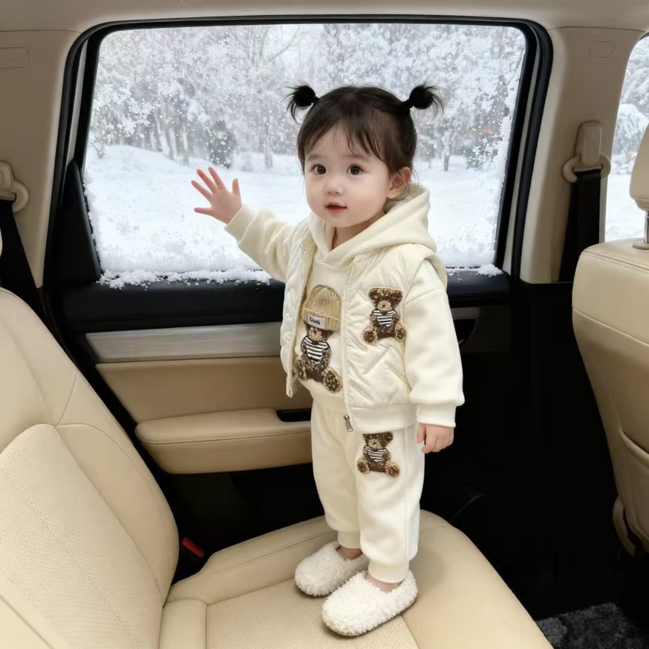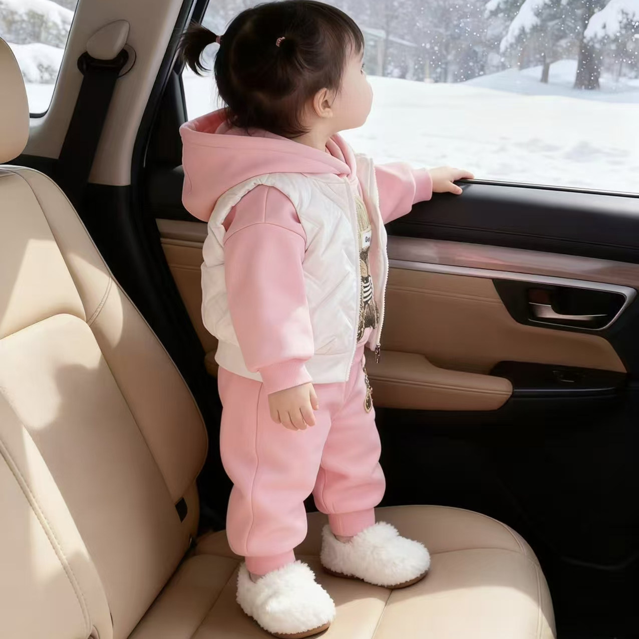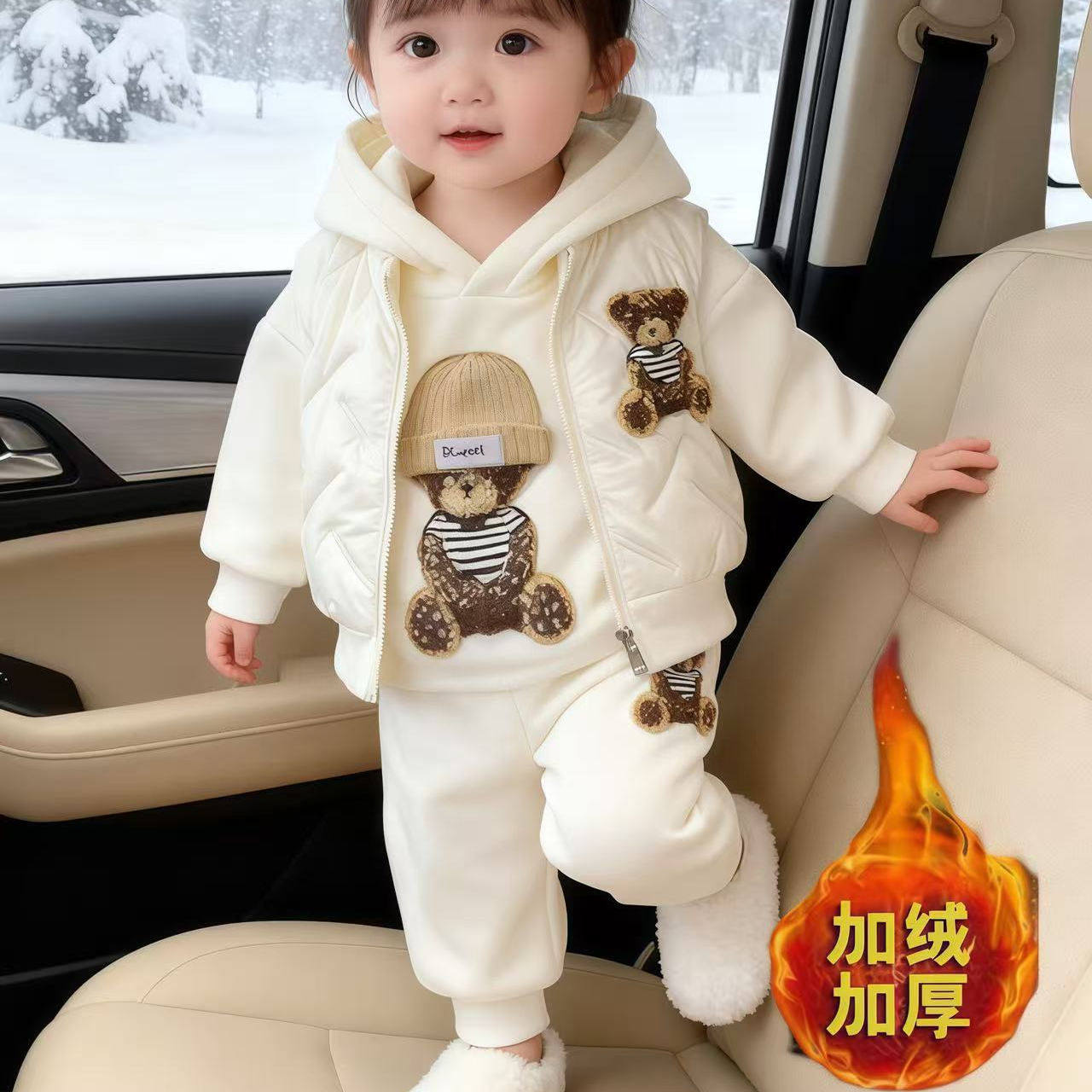 女童套装冬季2025新款儿童冬装马甲加绒加厚卫衣洋气三件套