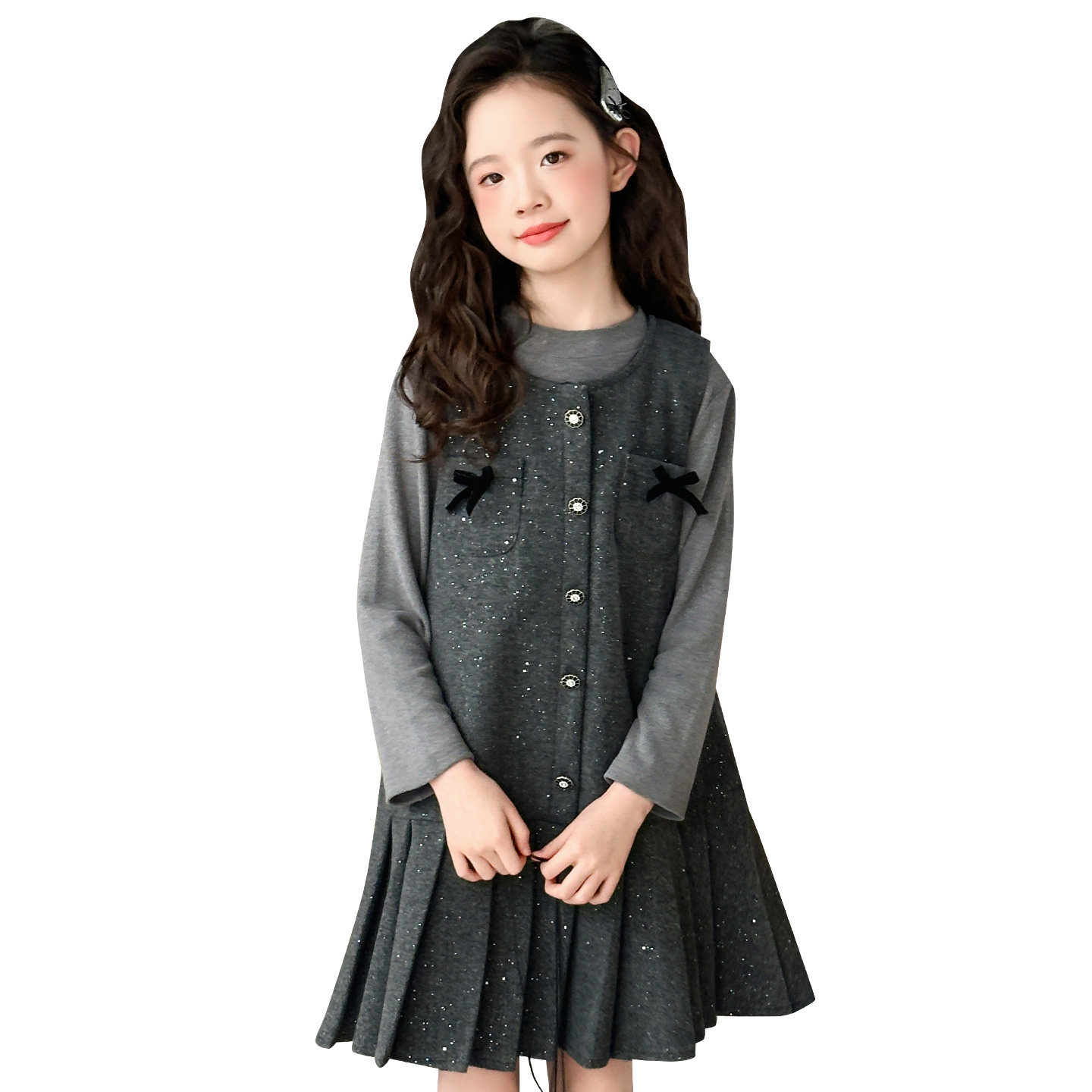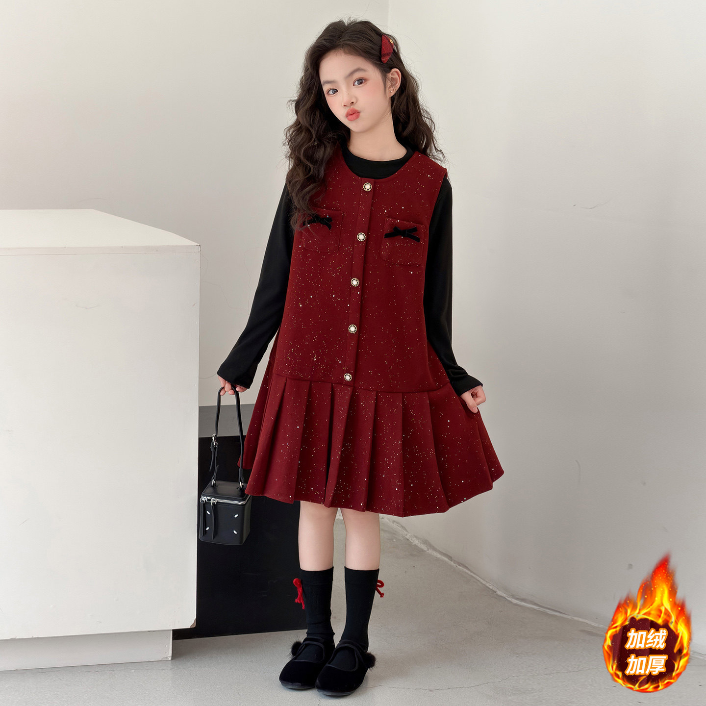 311线报网描述:女童小香风亮片毛呢马甲裙套装