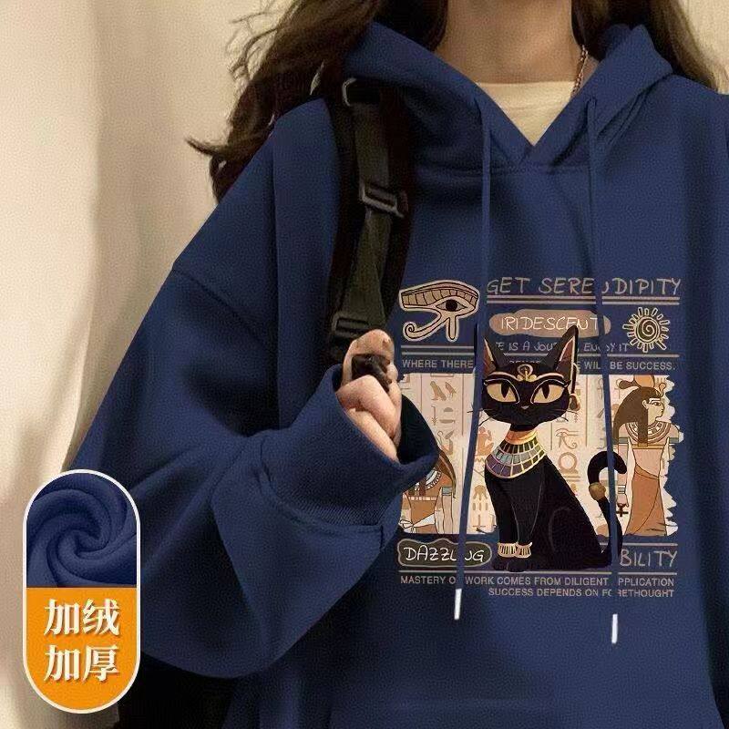 酒红色卫衣女秋冬季2026新款爆款时尚洋气加绒加厚中长款外套上衣