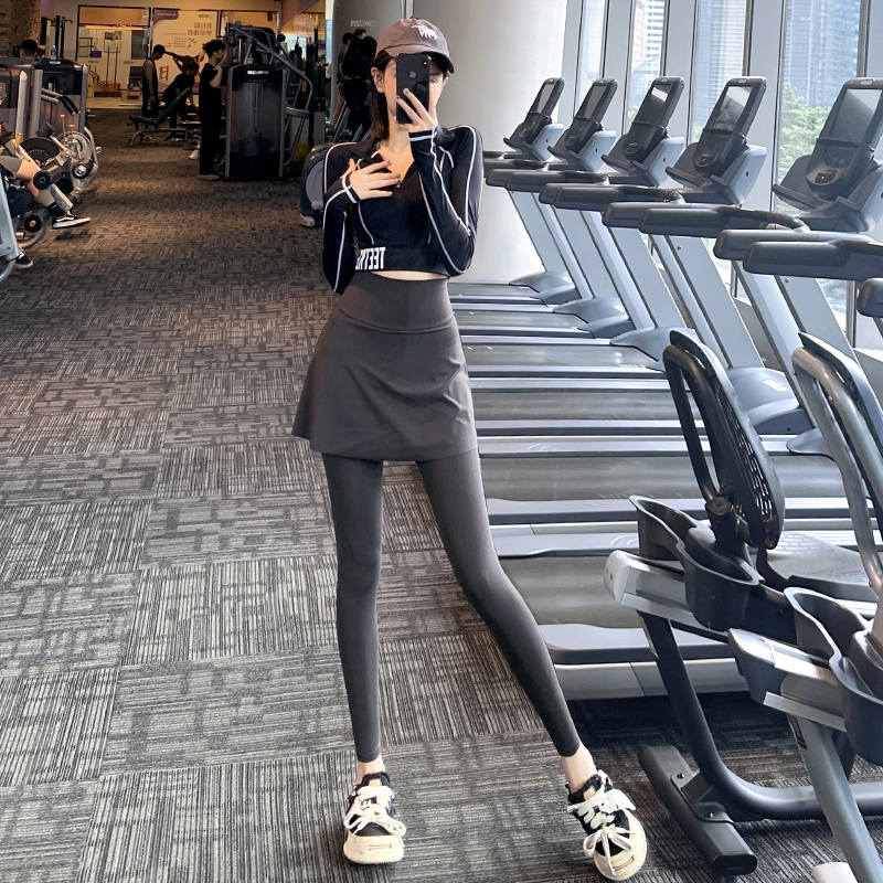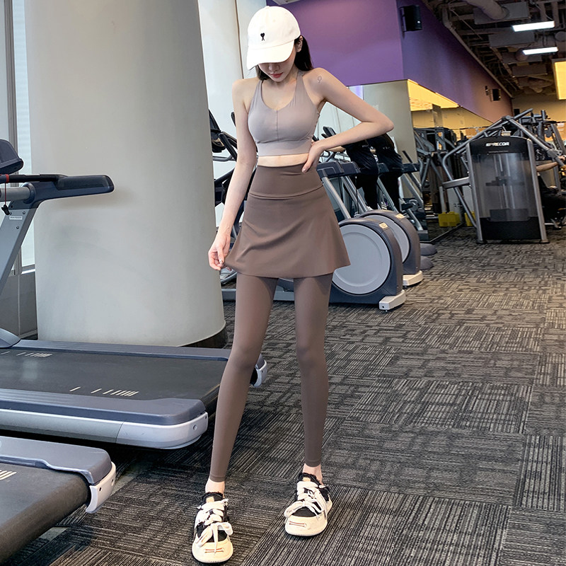 健身女孩假两件遮臀瑜伽裙裤高腰防走光外穿羽毛球服跑步运动长裤