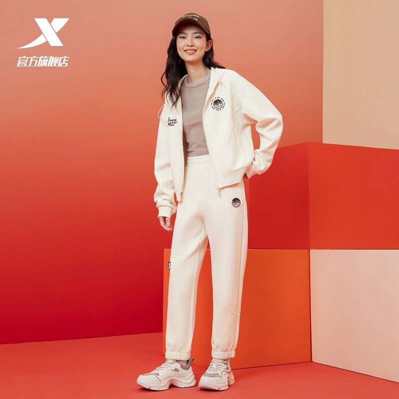 特步卫衣外套女款2025秋季新款休闲百搭针织连帽上衣975128940220