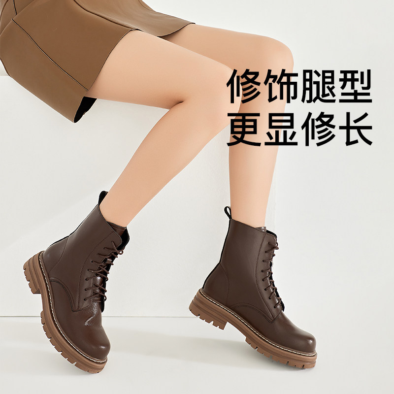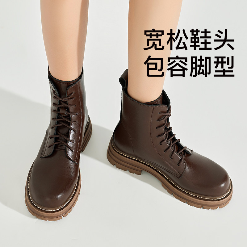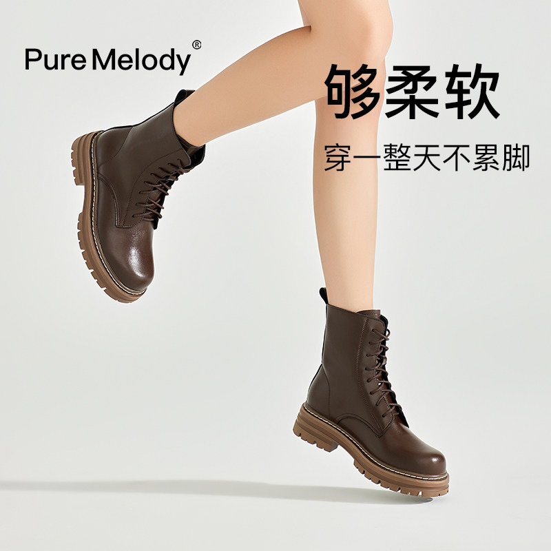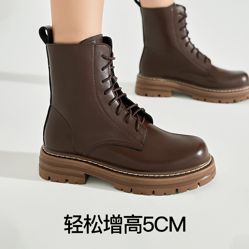 PM厚底棕色马丁靴女士2026年春季新款英伦风短靴真皮增高爆款靴子