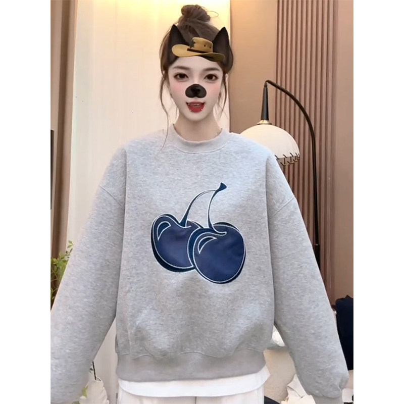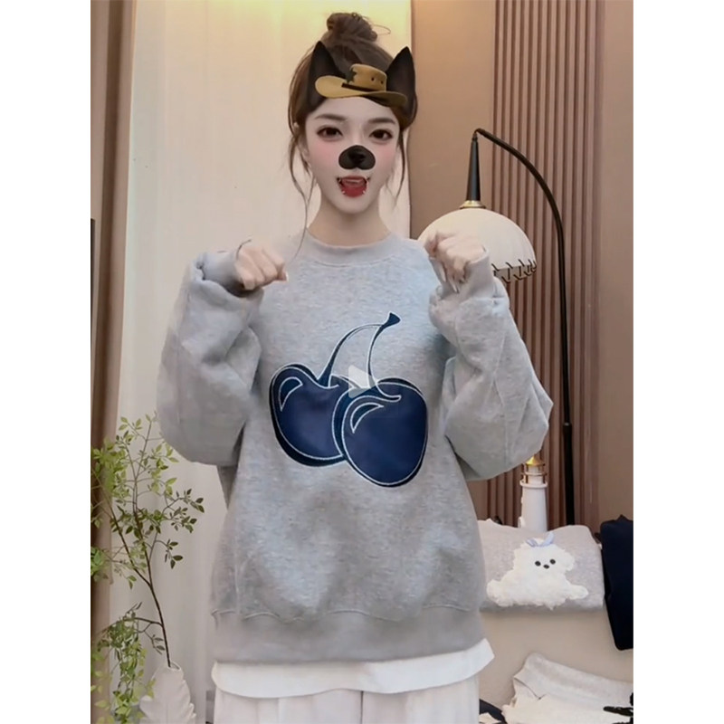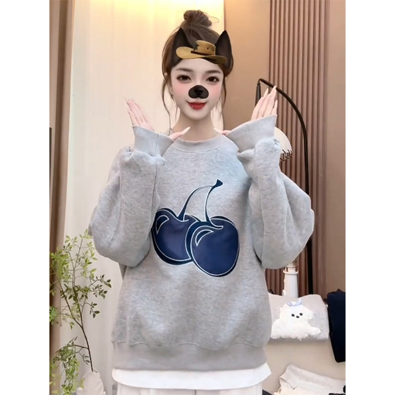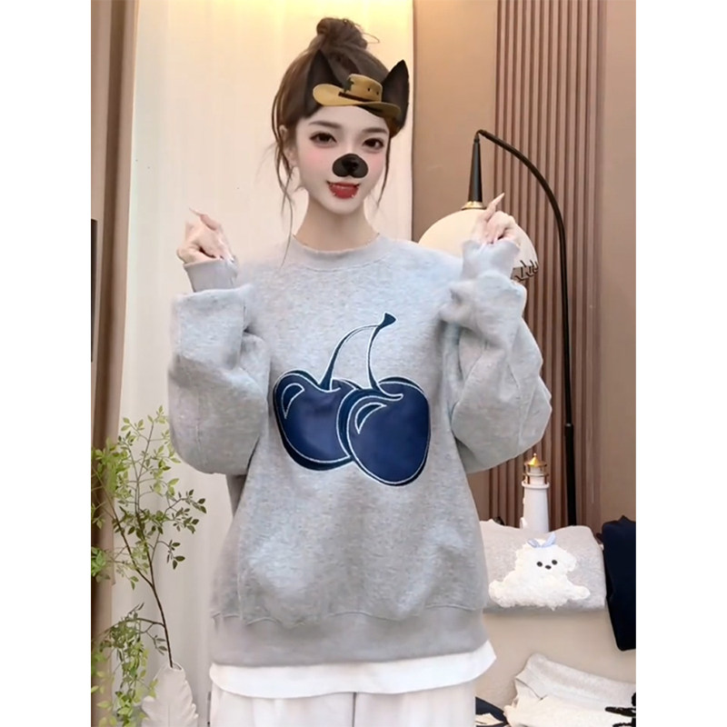 灰色无帽卫衣女款秋冬季2026新款胖mm宽松加绒刺绣外套上衣小个子