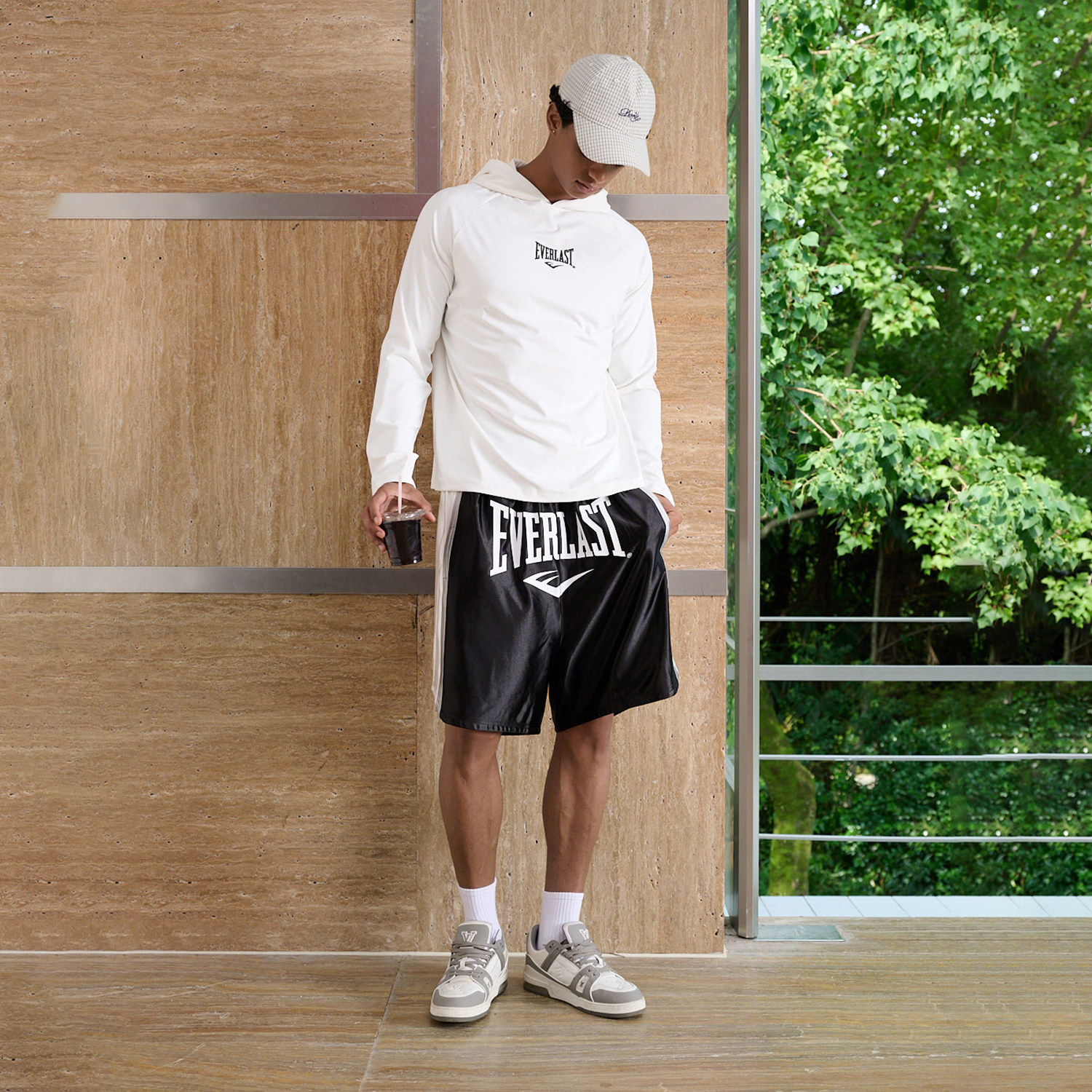 美国EVERLAST拳击美式运动街头男女款简约休闲纯白色插肩连帽卫衣