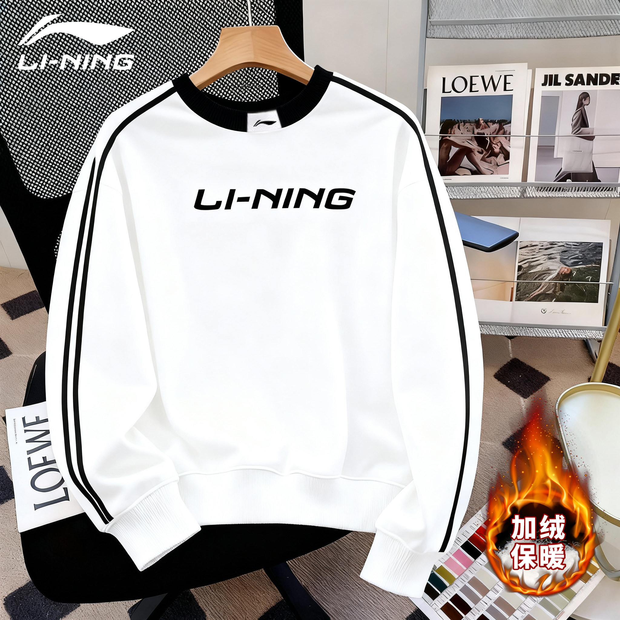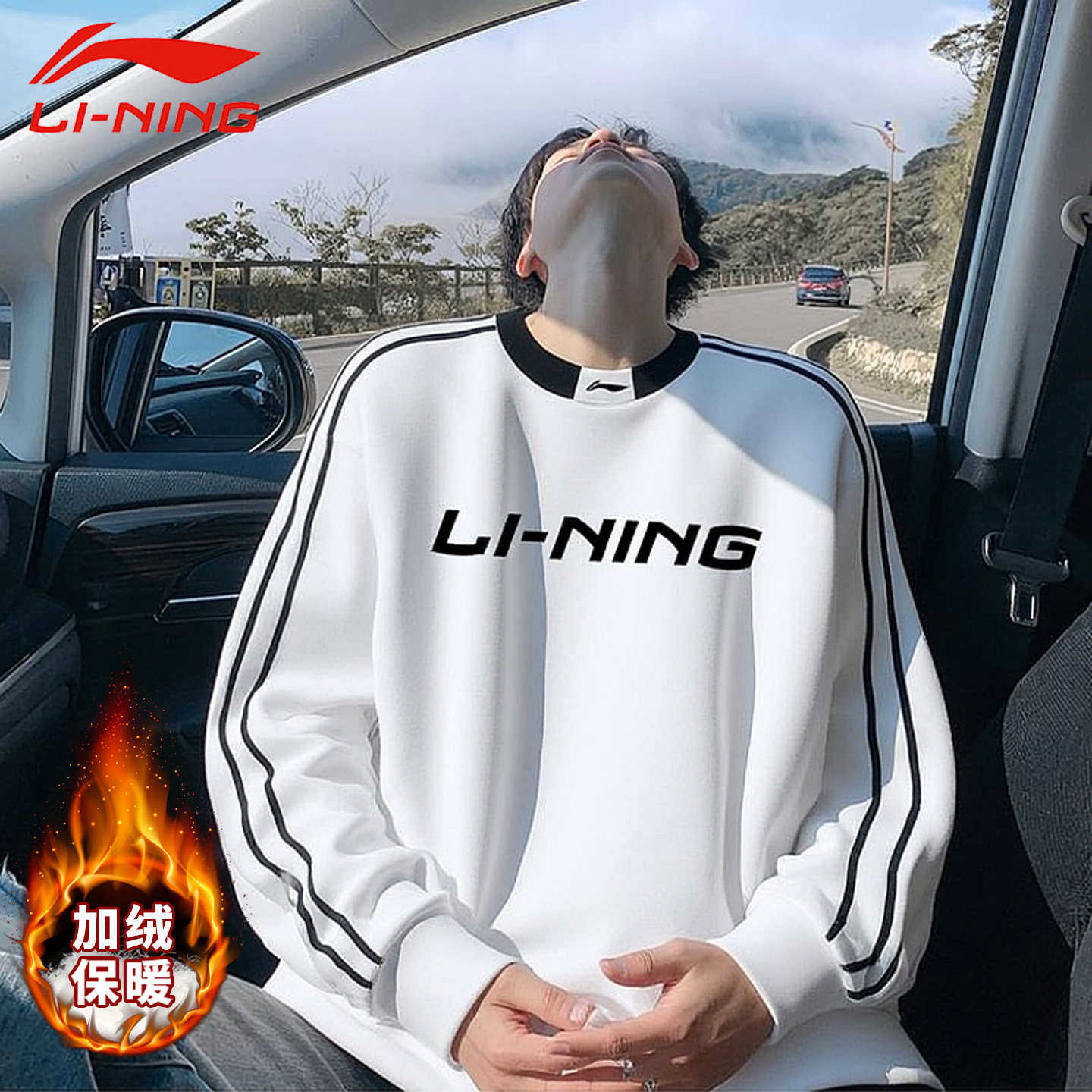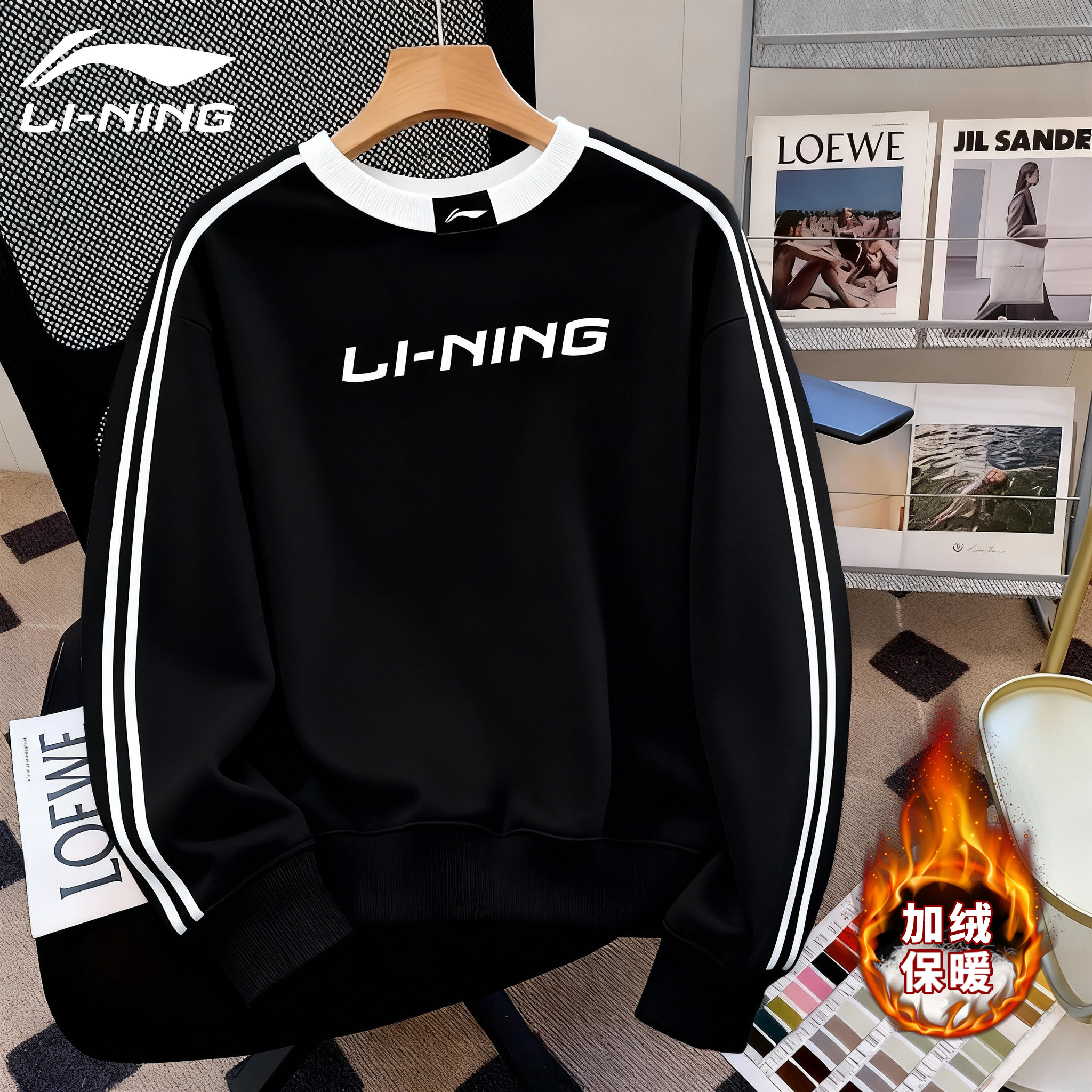 李宁加绒卫衣男士春秋季新款潮流青少年保暖帽衫加厚黑色运动外套
