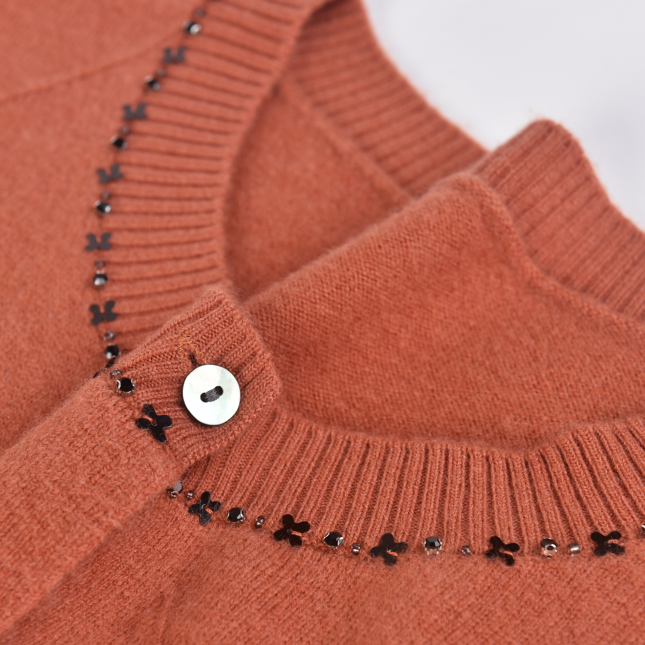 洋气妈妈100纯羊毛衫女秋冬新款中老年大码针织开衫圆领毛衣外套