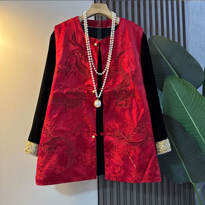 新中式大码女装2026新款轻奢国风贵气重工刺绣马甲小衫显瘦两件套