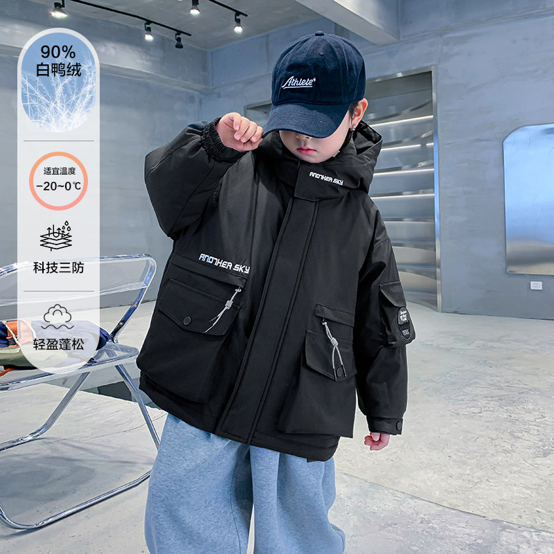 男童冬季红色新年冲锋衣工装羽绒服2026新款中大儿童冬装加厚外套