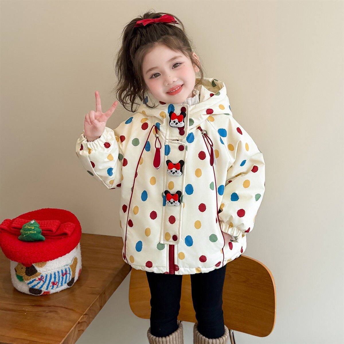 女童冬装巨好看外套夹棉冲锋衣连帽加厚秋冬2025款儿童洋气时女宝