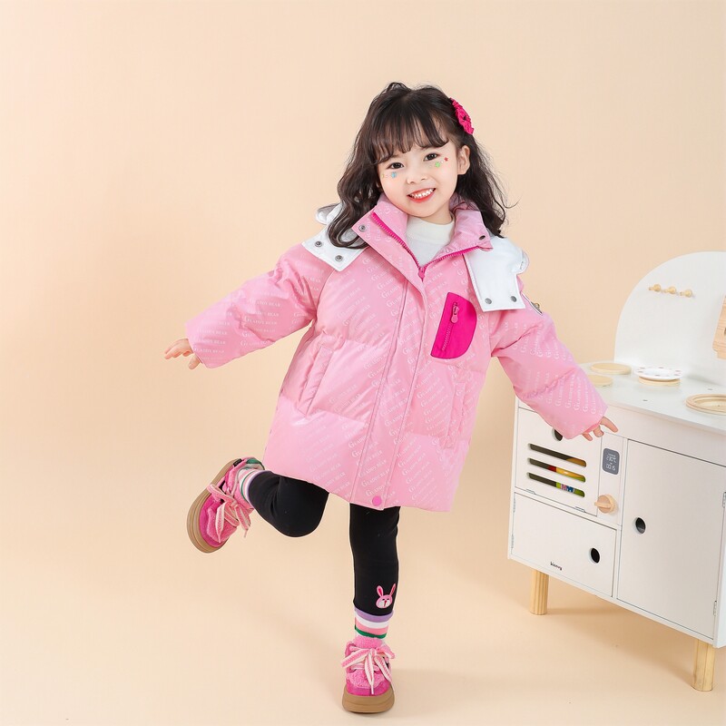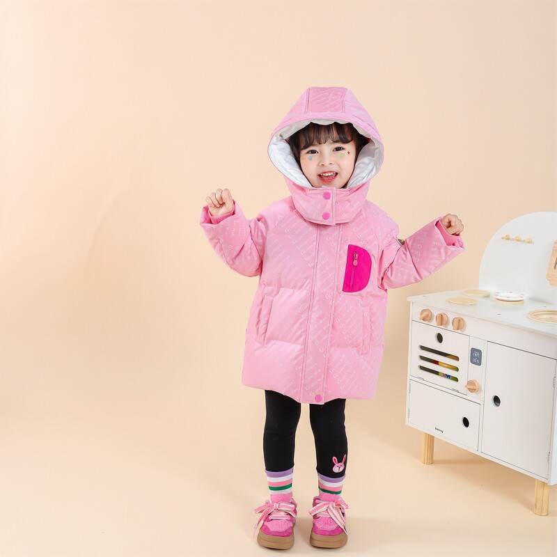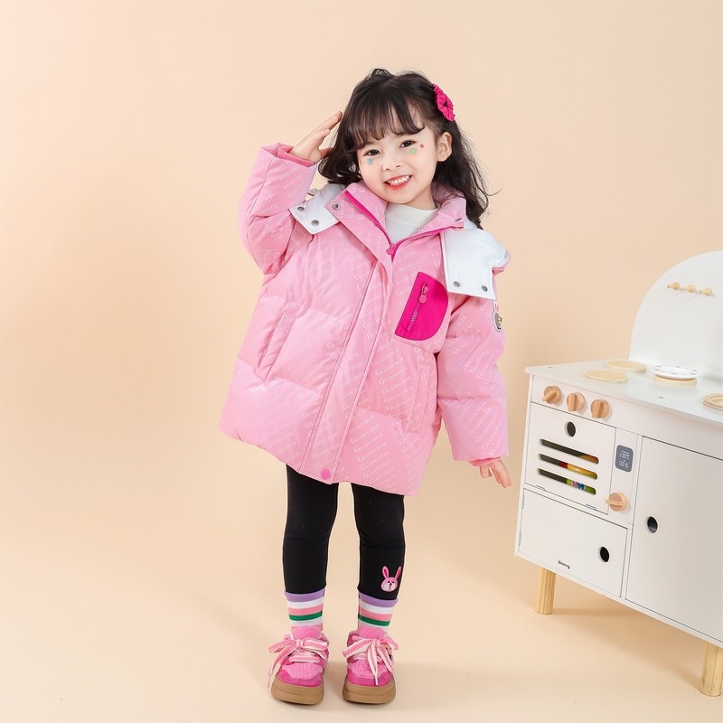 【高充鹅绒】女童满印羽绒服冬季2026新款儿童女宝宝短款加厚外套