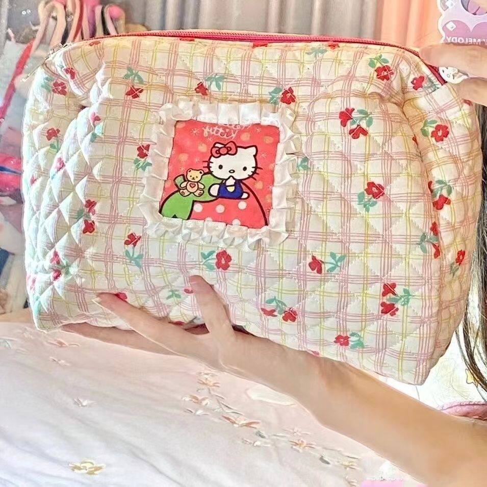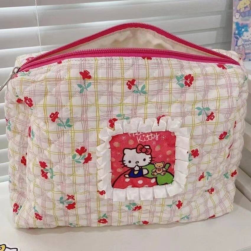 可爱卡通小猫咪化妆包旅行便携大容量撞色碎花收纳包学生女