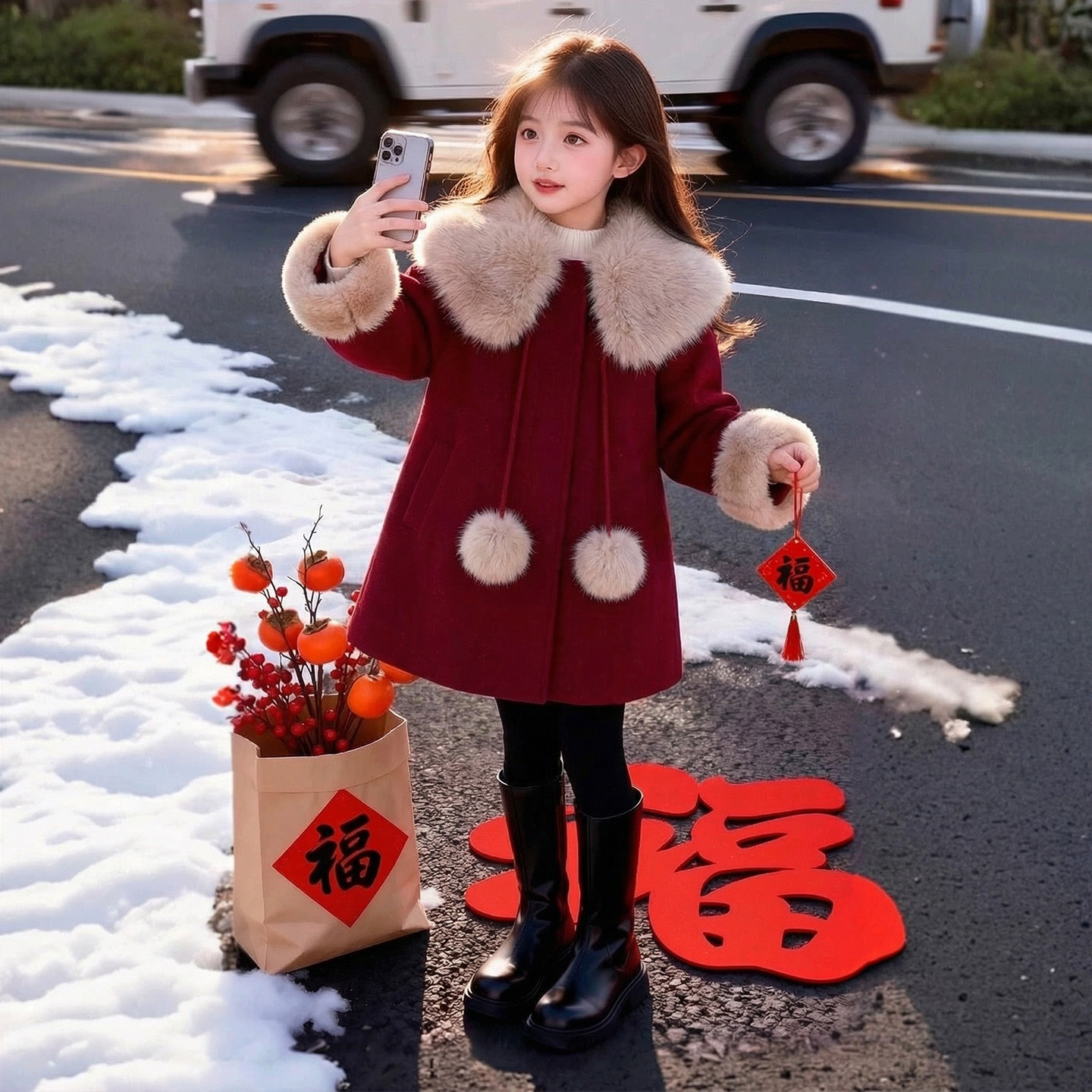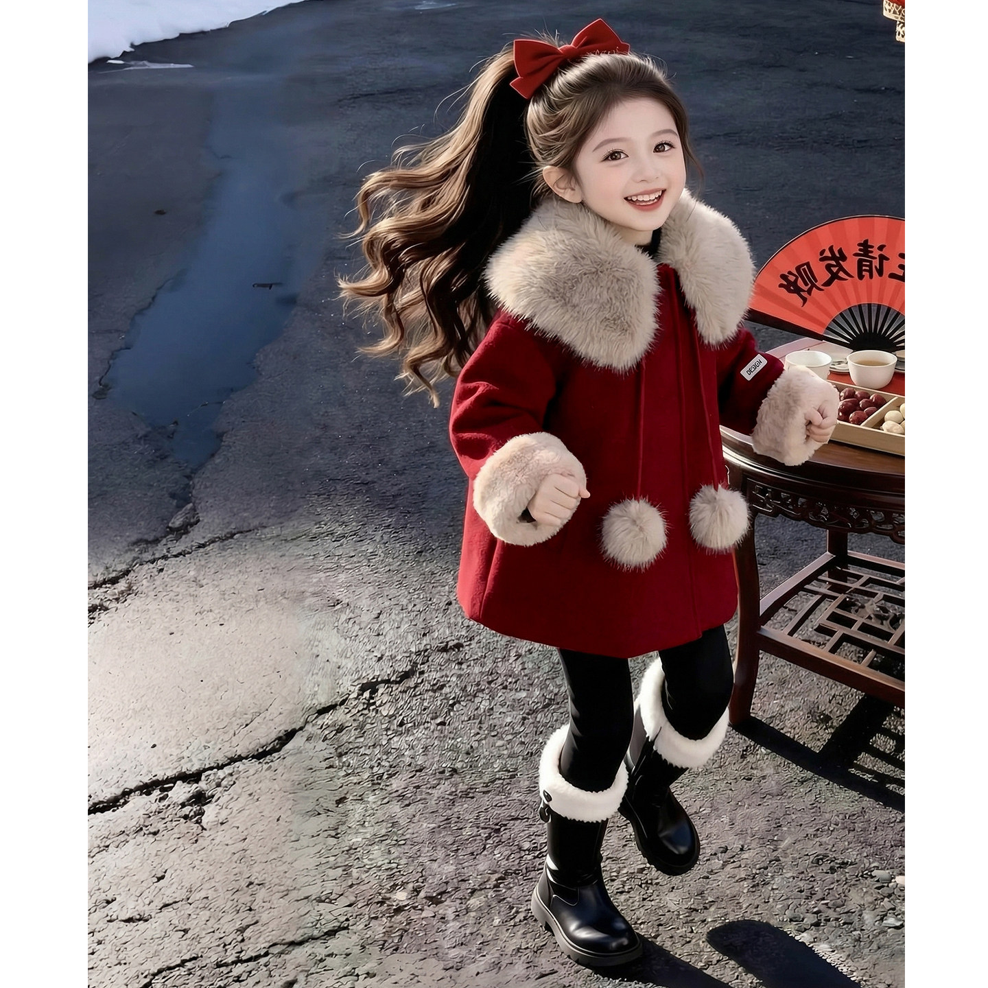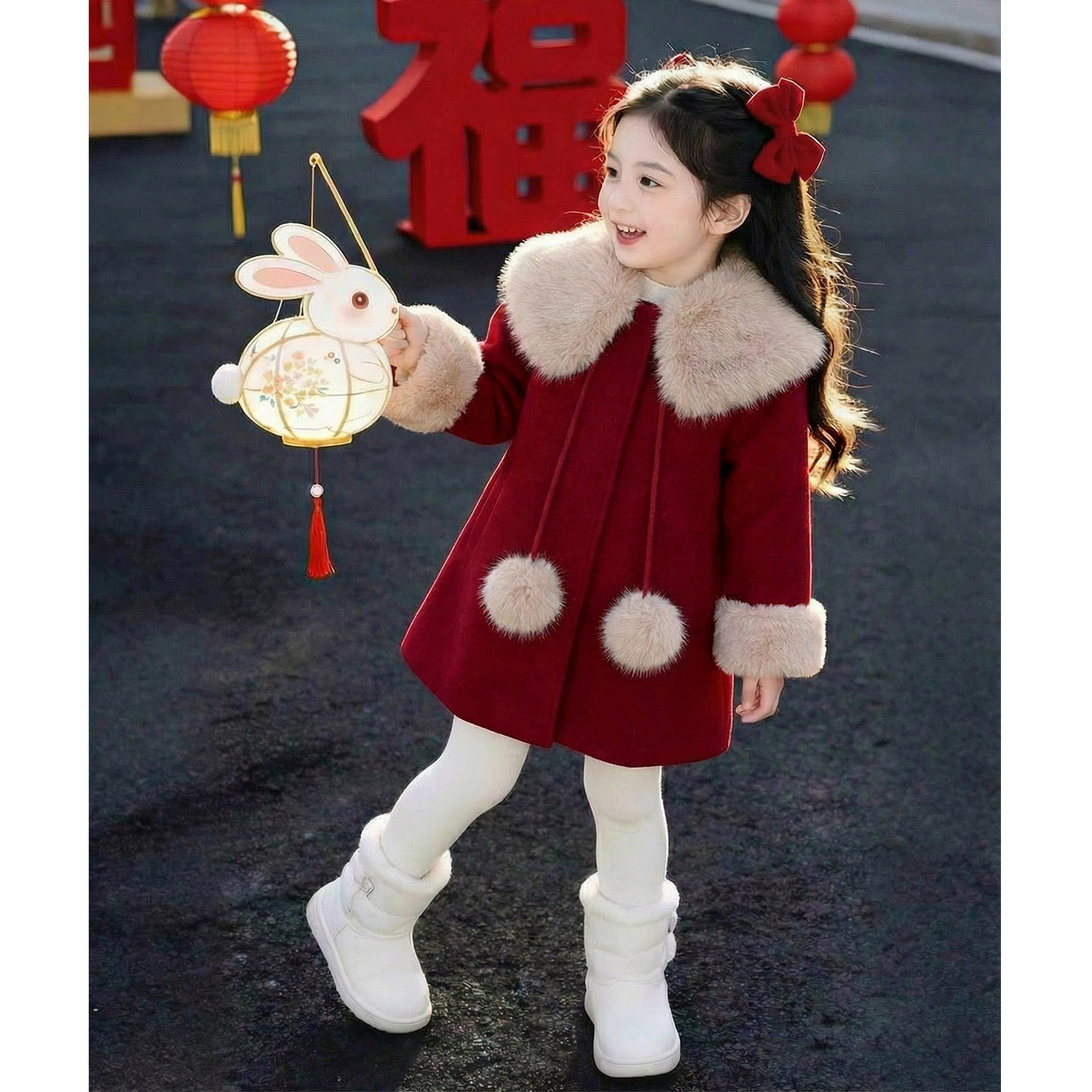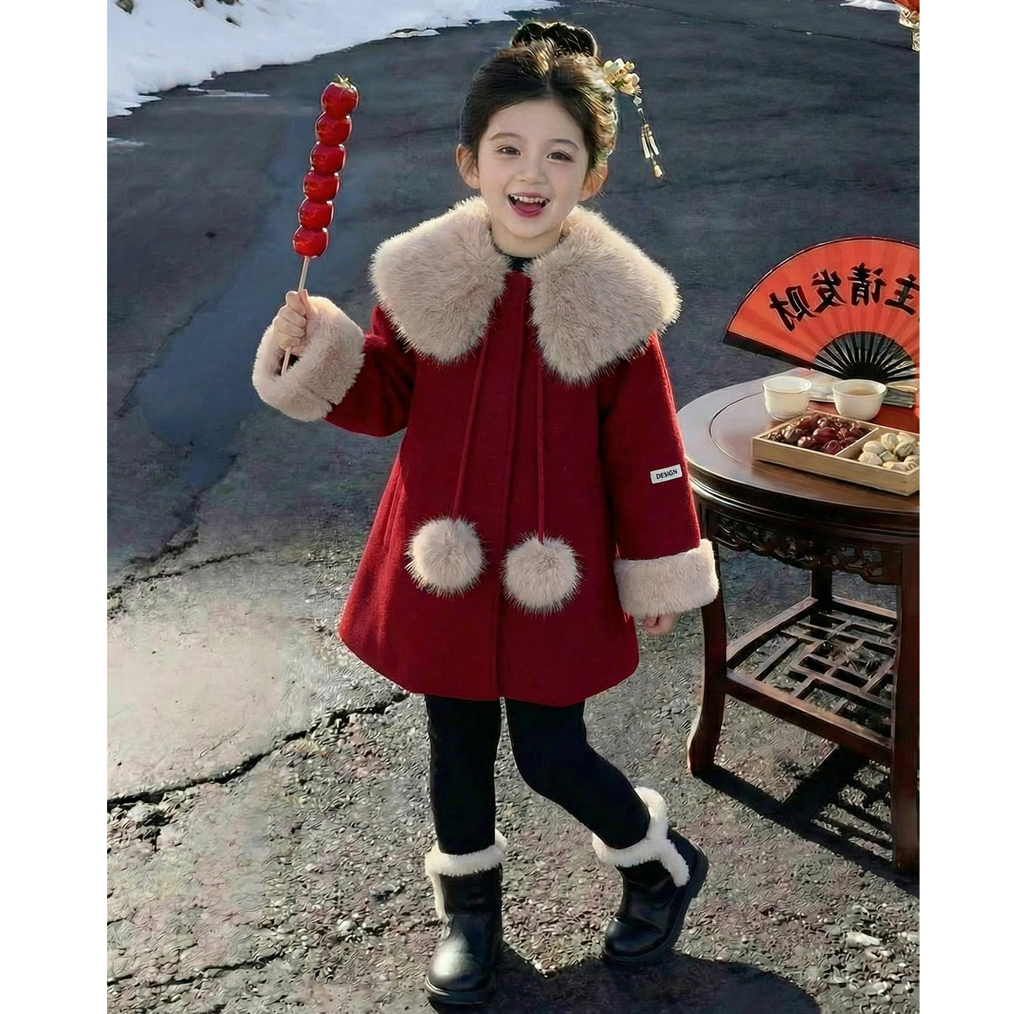 女童外套2026新款冬装儿童洋气时髦爆款红色呢子大衣女孩过年衣服