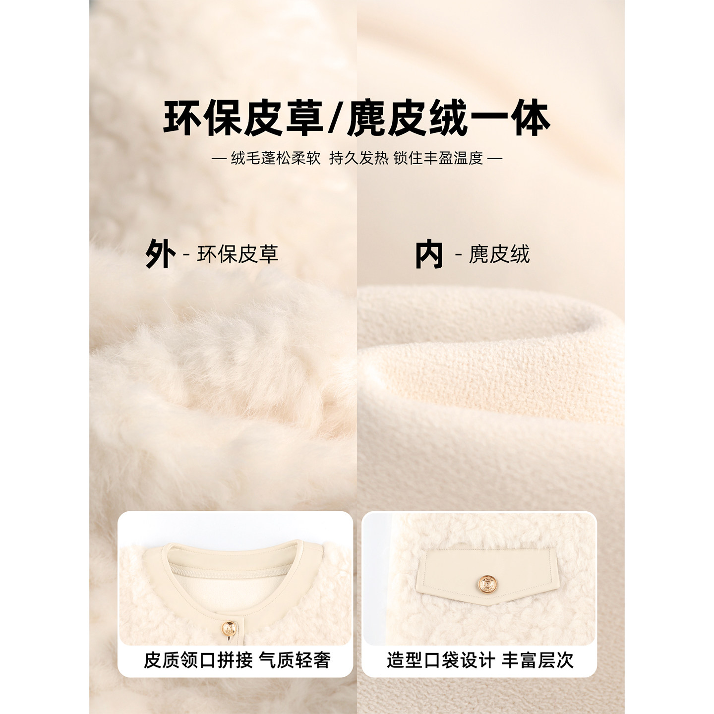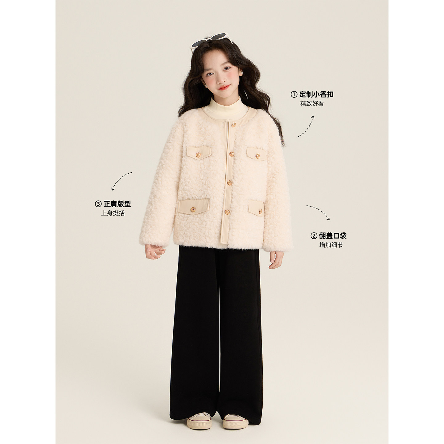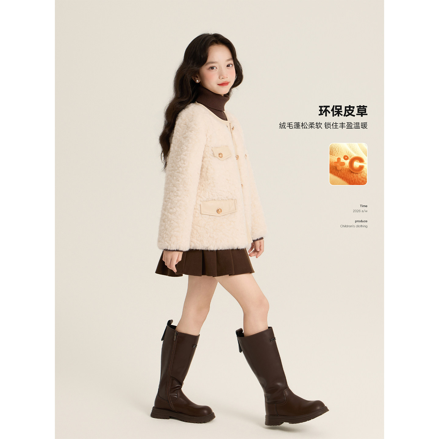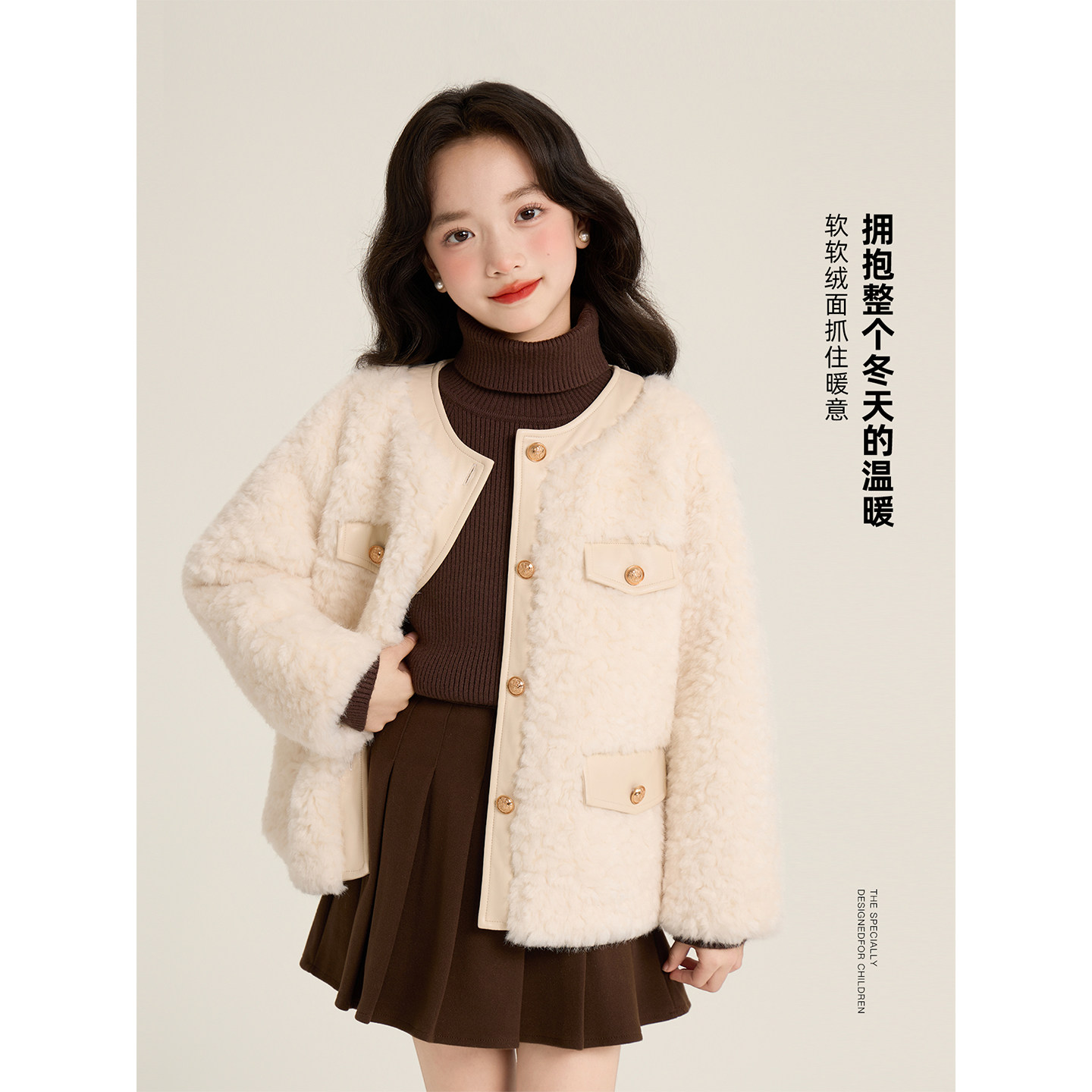 Amybaby女童上衣冬季2025新款甜美小香风气质加厚一体皮毛外套
