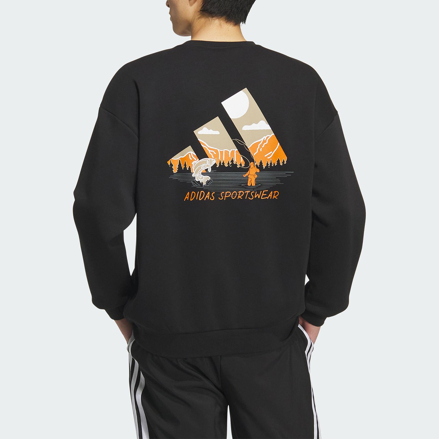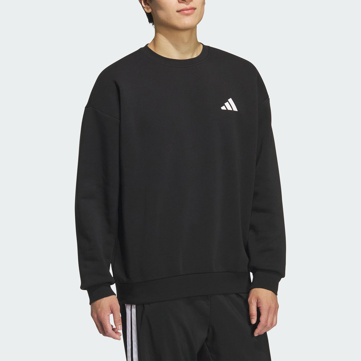 阿迪达斯加绒卫衣外套男秋冬季新款运动服针织宽松休闲圆领套头衫