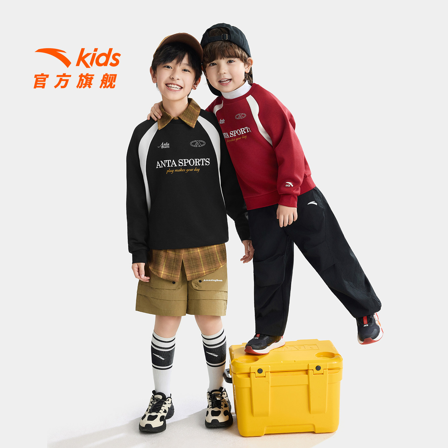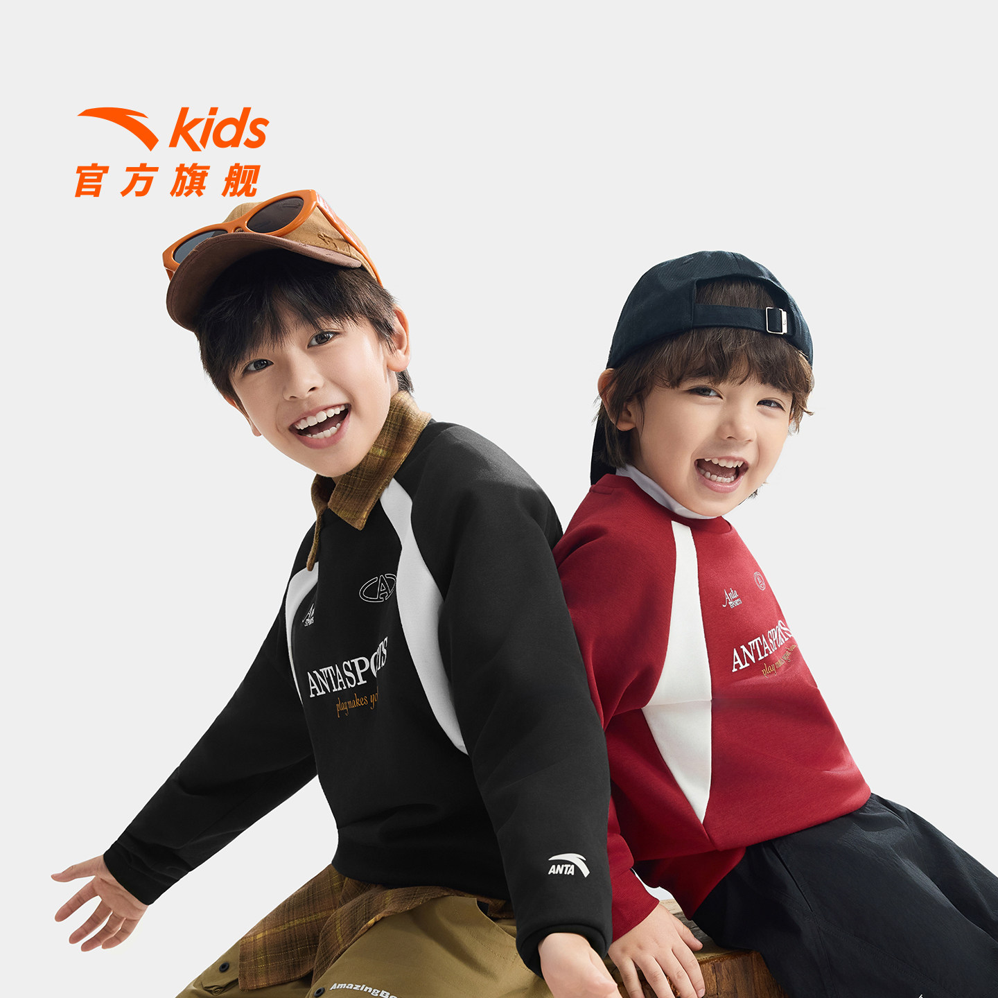 安踏儿童卫衣男童套头衫2026年新年马年红色中大童加绒运动卫衣