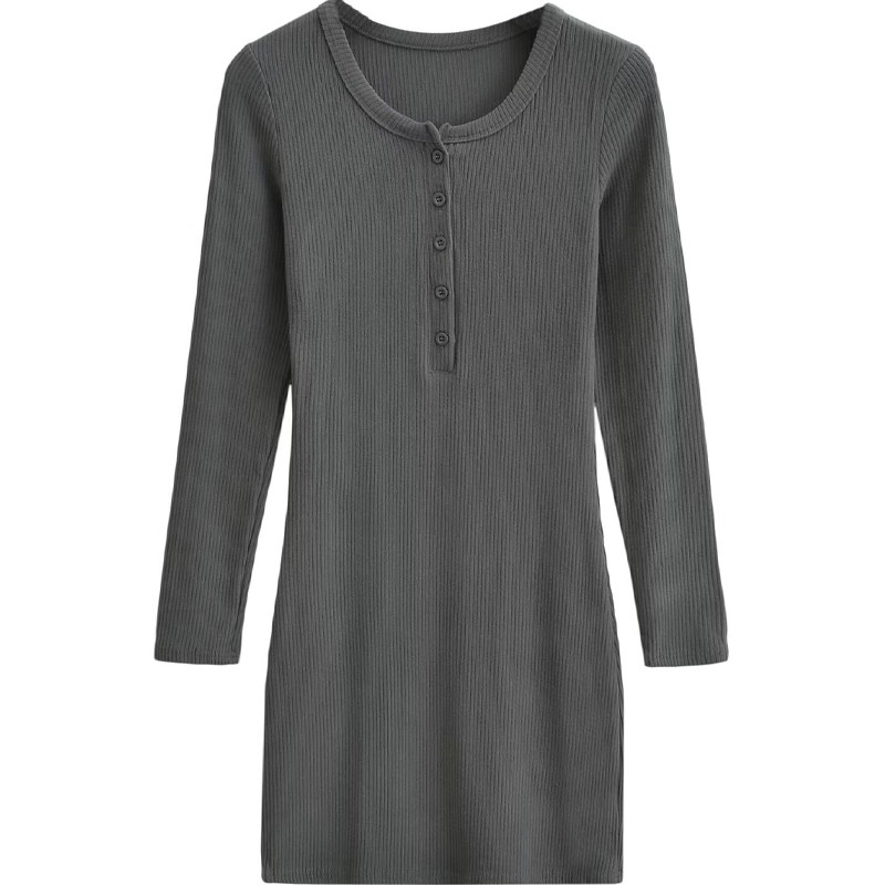 小妈裙灰色百搭高弹长袖连衣裙女春秋紧身显瘦小个子打底包臀短裙