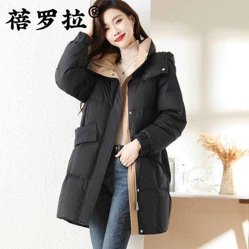 蓓罗拉小个子羽绒服女中长款冬季新款2024女款高级感洋气连帽外套