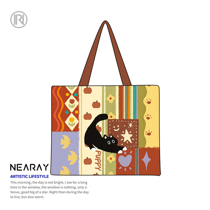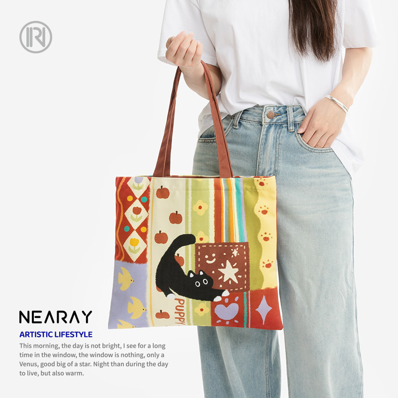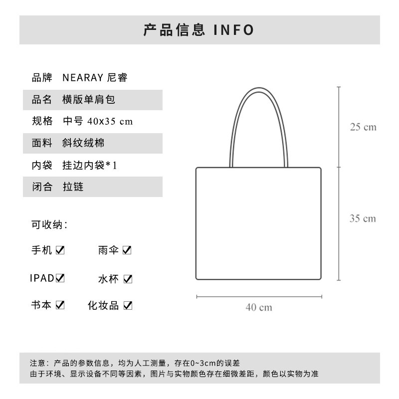 尼睿帆布袋学生装书大容量带拉链单肩包女2025新款帆布包可爱AC
