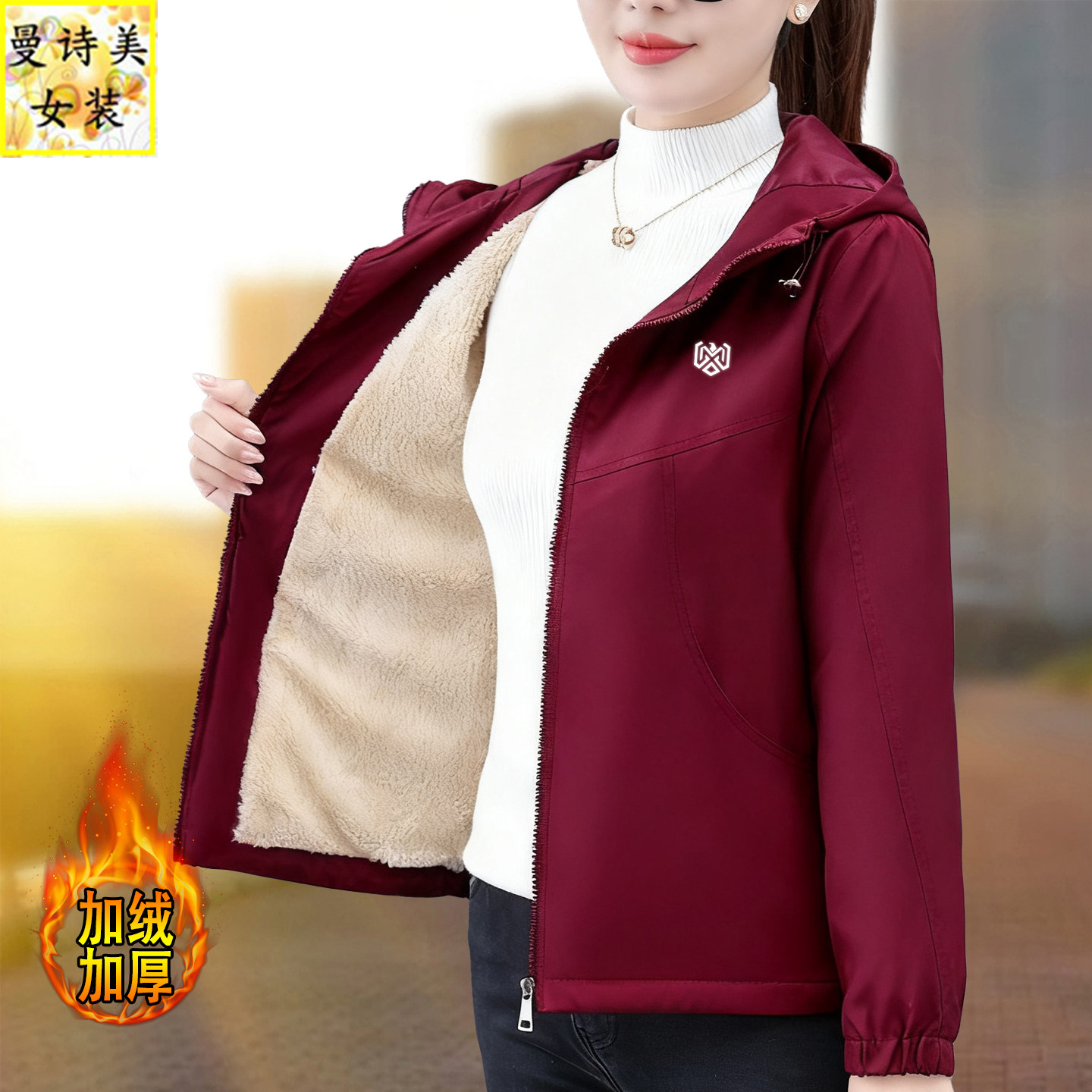 欧货加绒或不加绒短款连帽双拉链冲锋衣外套女2026秋冬季夹克上衣