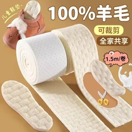 可裁剪100%羊毛儿童保暖棉鞋垫男女加绒厚小孩专用乳胶吸汗防臭冬