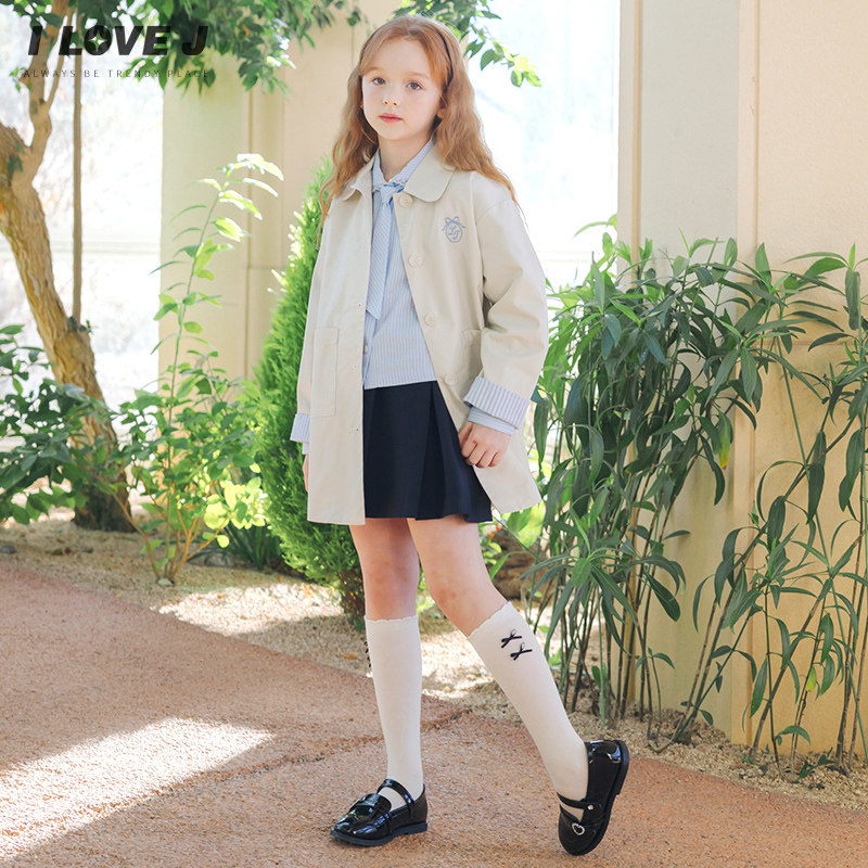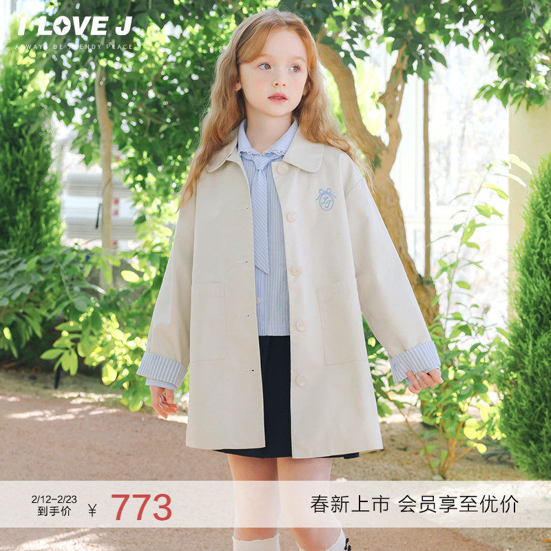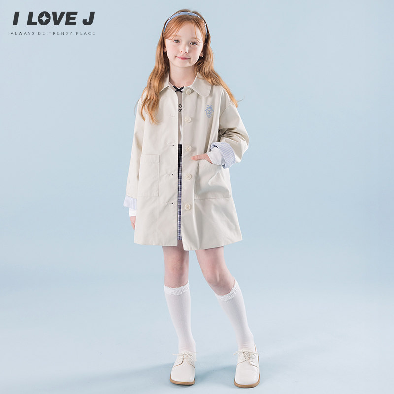 ILOVEJ韩国童装2026春新款韩系女童经典风衣中长款外套/JYSOU09