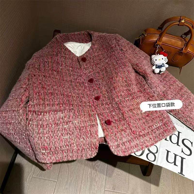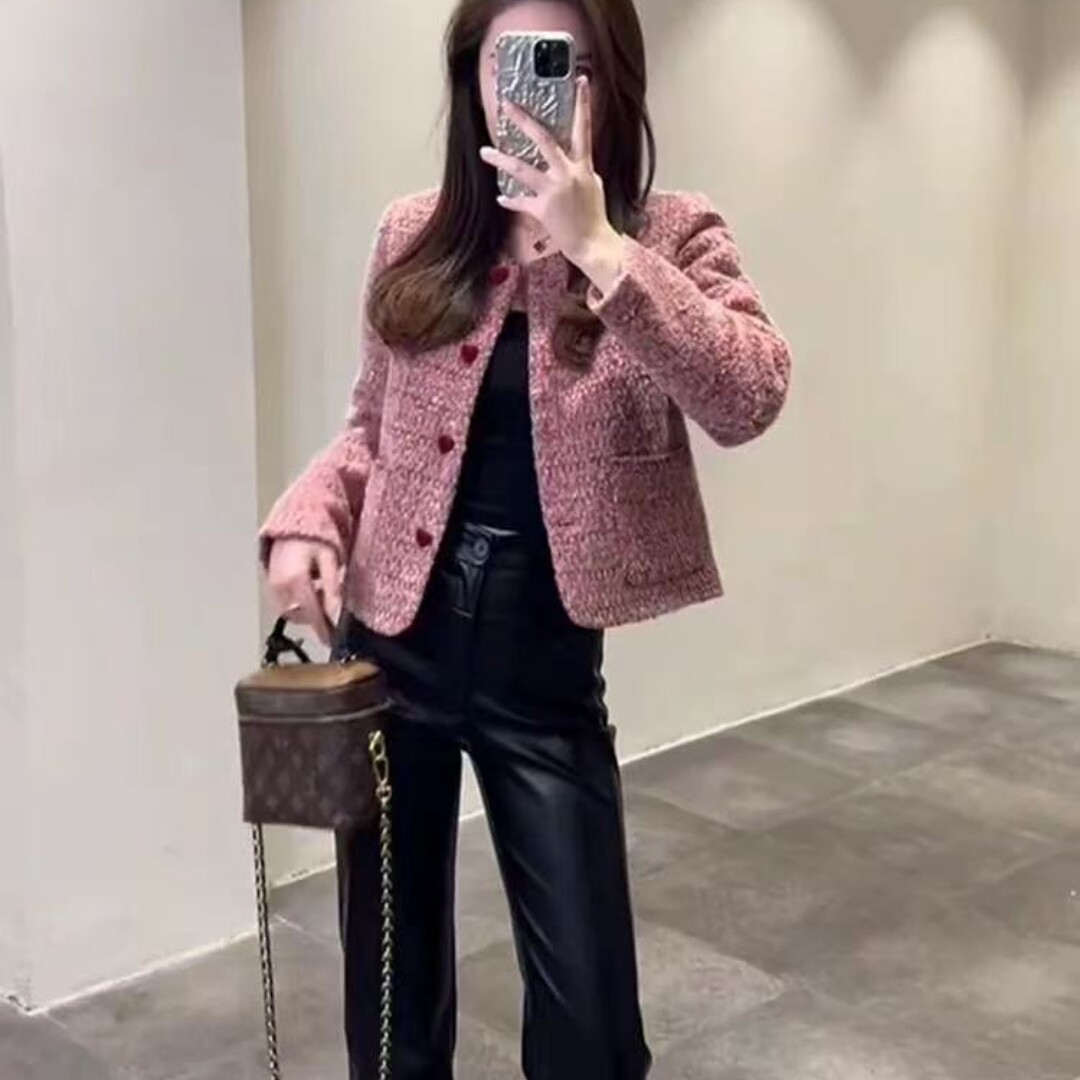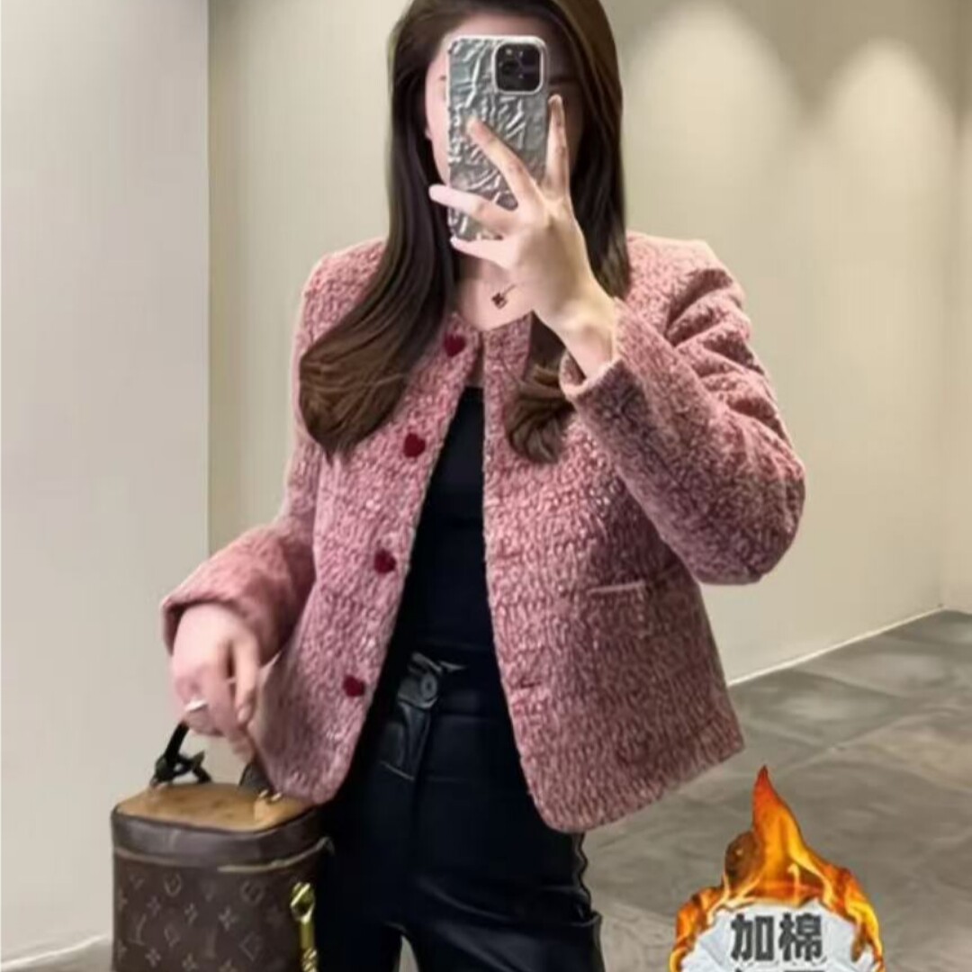 粉色小香风加厚保暖穿搭时尚短款高级外套2025名媛秋冬新款气质女