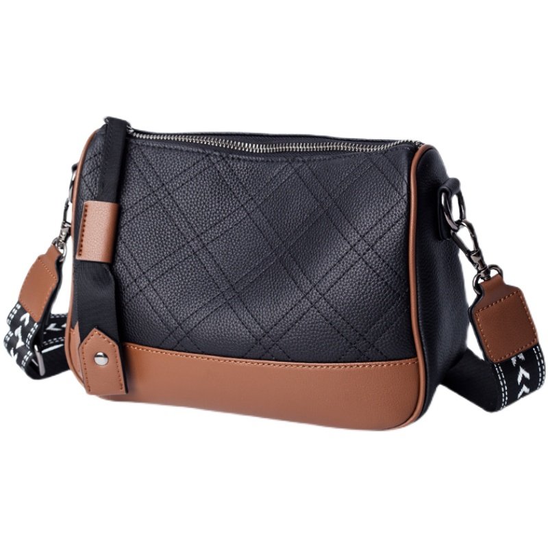 女款包包2026年新款洋气菱格真皮单肩包女士时尚撞色宽肩带斜挎包