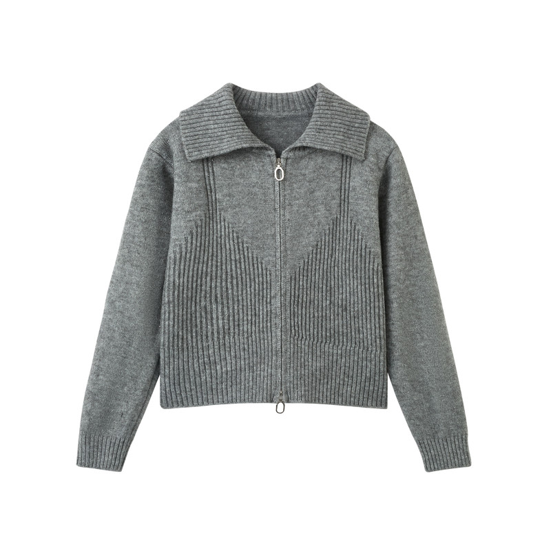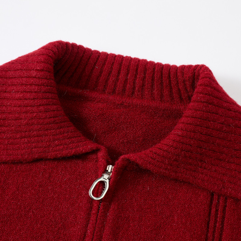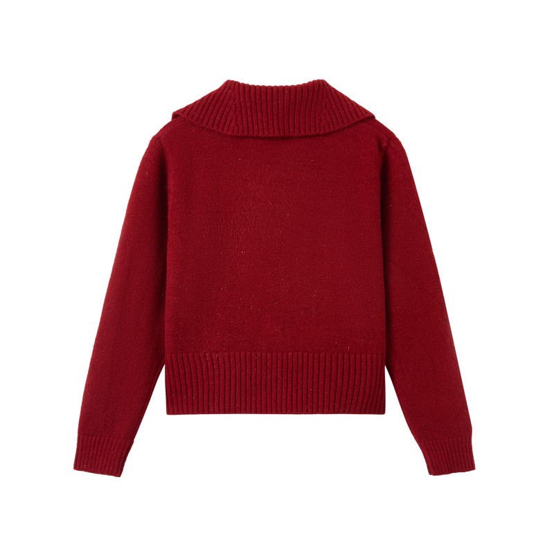 快鱼女士红色毛衣2026春季新款双拉链翻领正肩新年开衫女装上衣