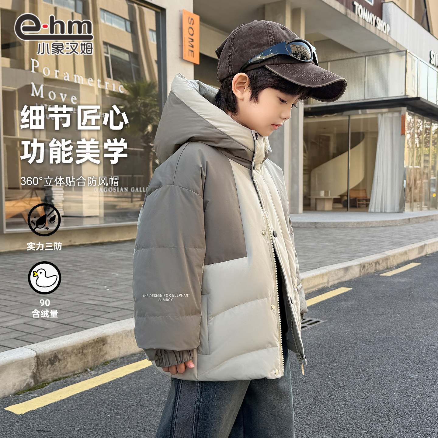 小象汉姆童装男童羽绒服保暖2026新款儿童户外三防冲锋外套白鸭绒